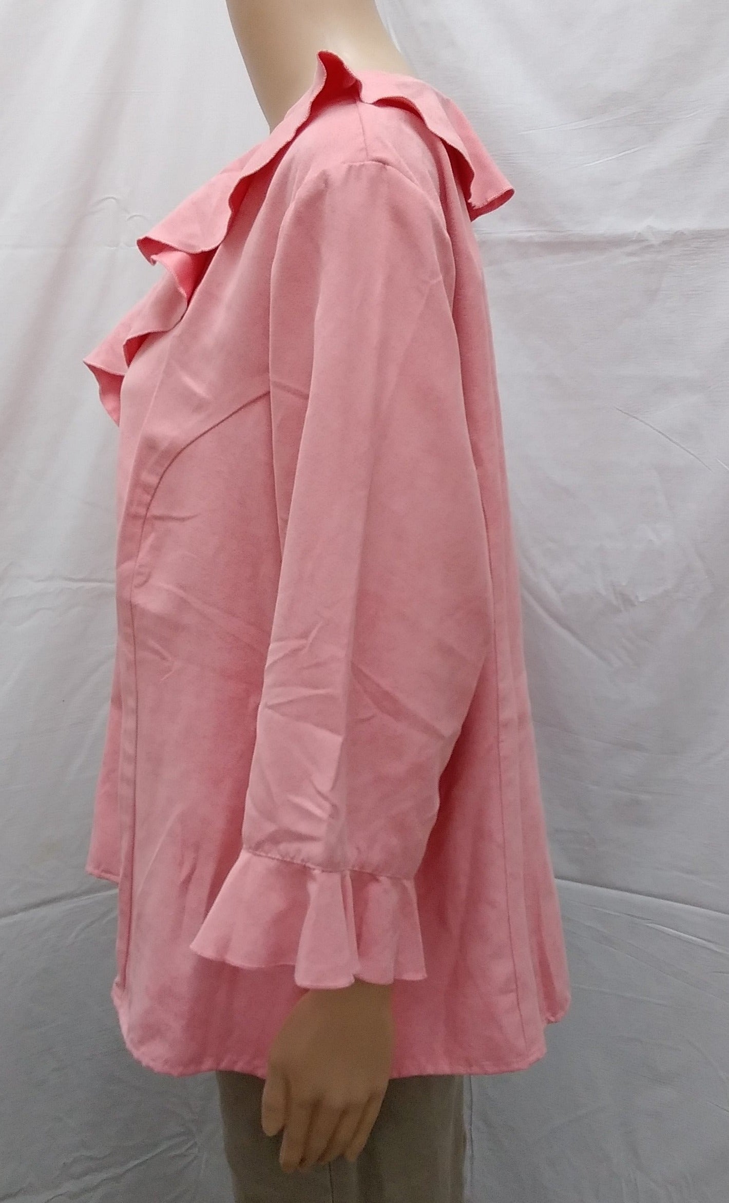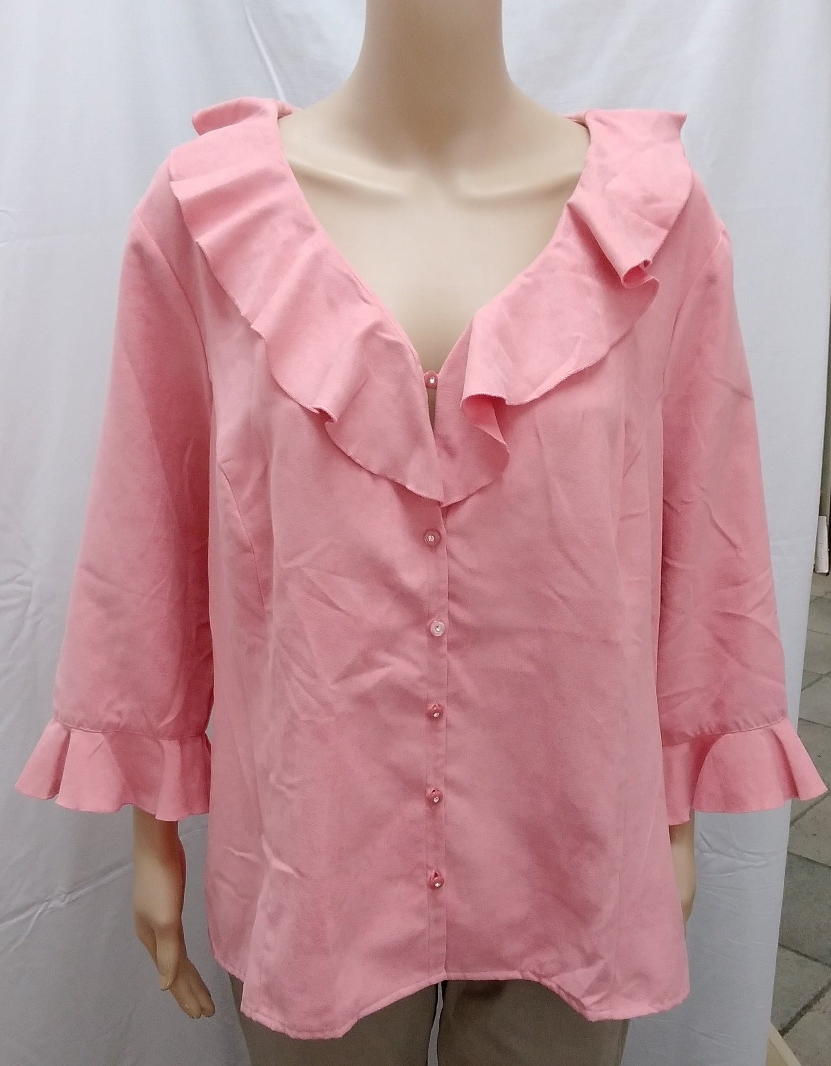 Description: Elegant pink ruffle blouse from Avenue.