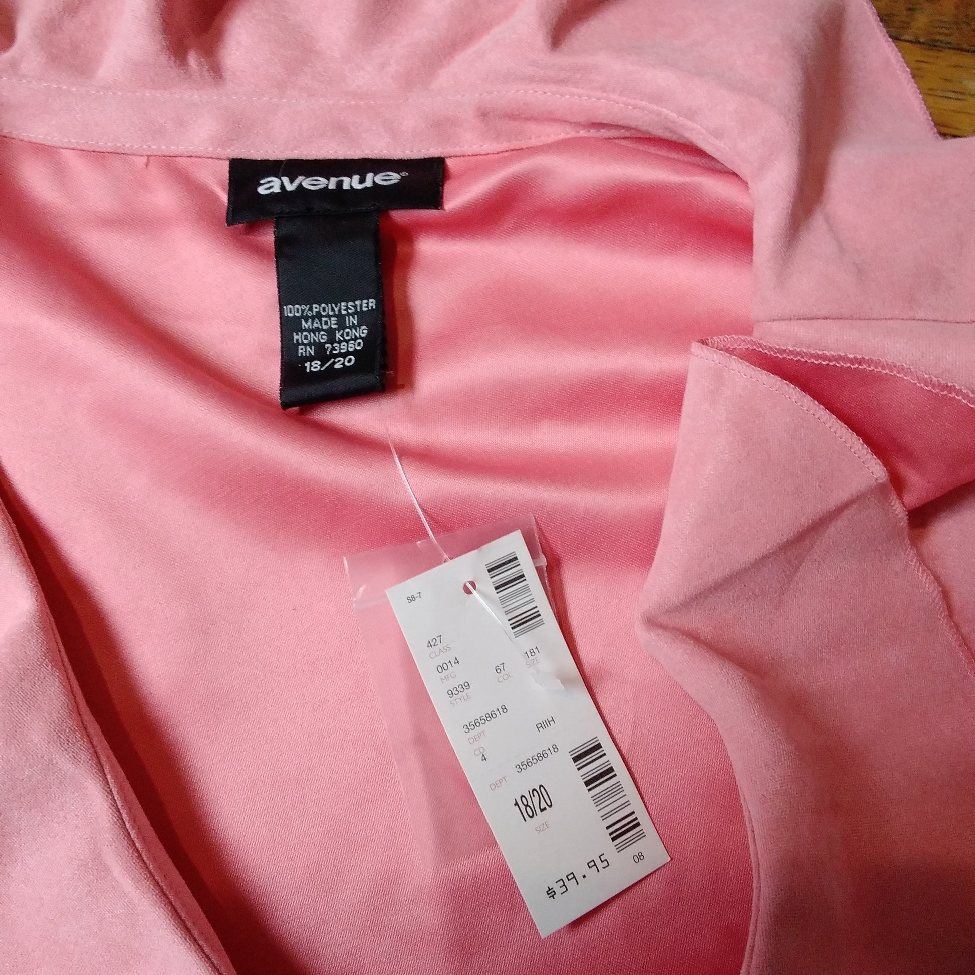 NWT -- Avenue Pink Ruffle V-neck Blouse -- 18/20
