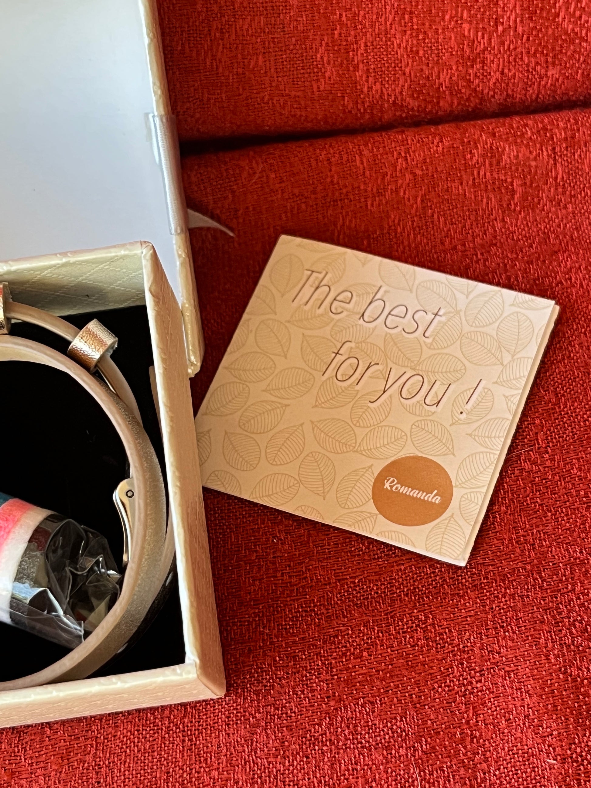 Aromatherapy bracelet with stainless steel locket and leather band and 8 washable refill pads. Use with your favorite essential oils.