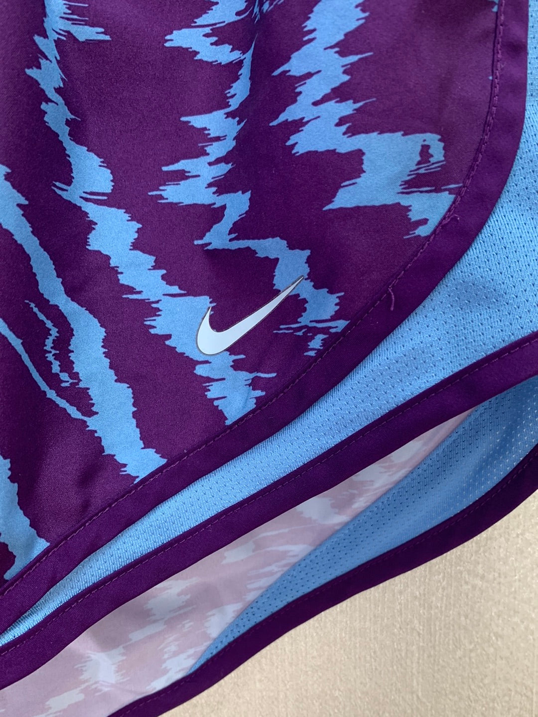 NIKE purple blue Print Dri-Fit Recycled Polyester Running Shorts - XL