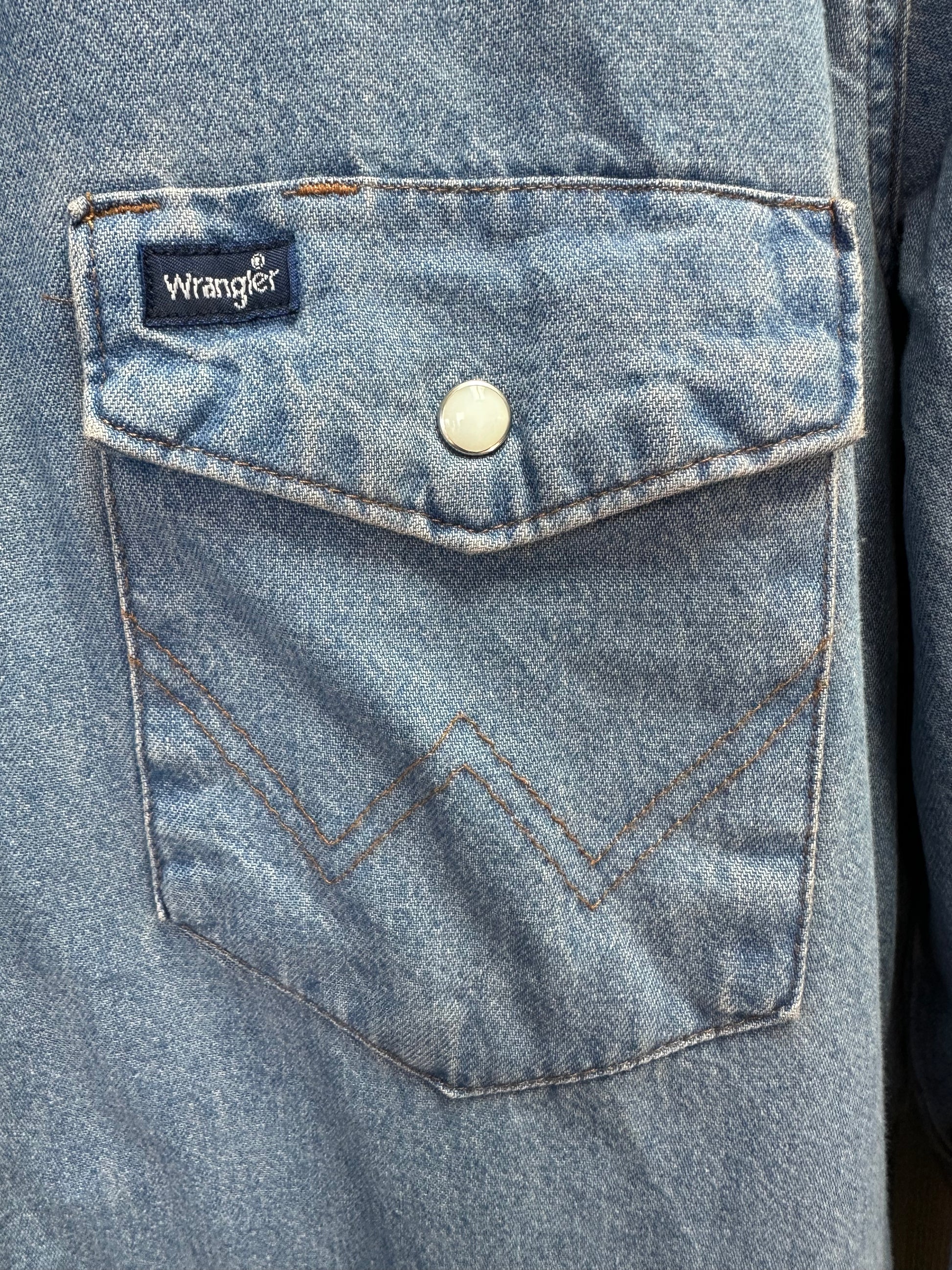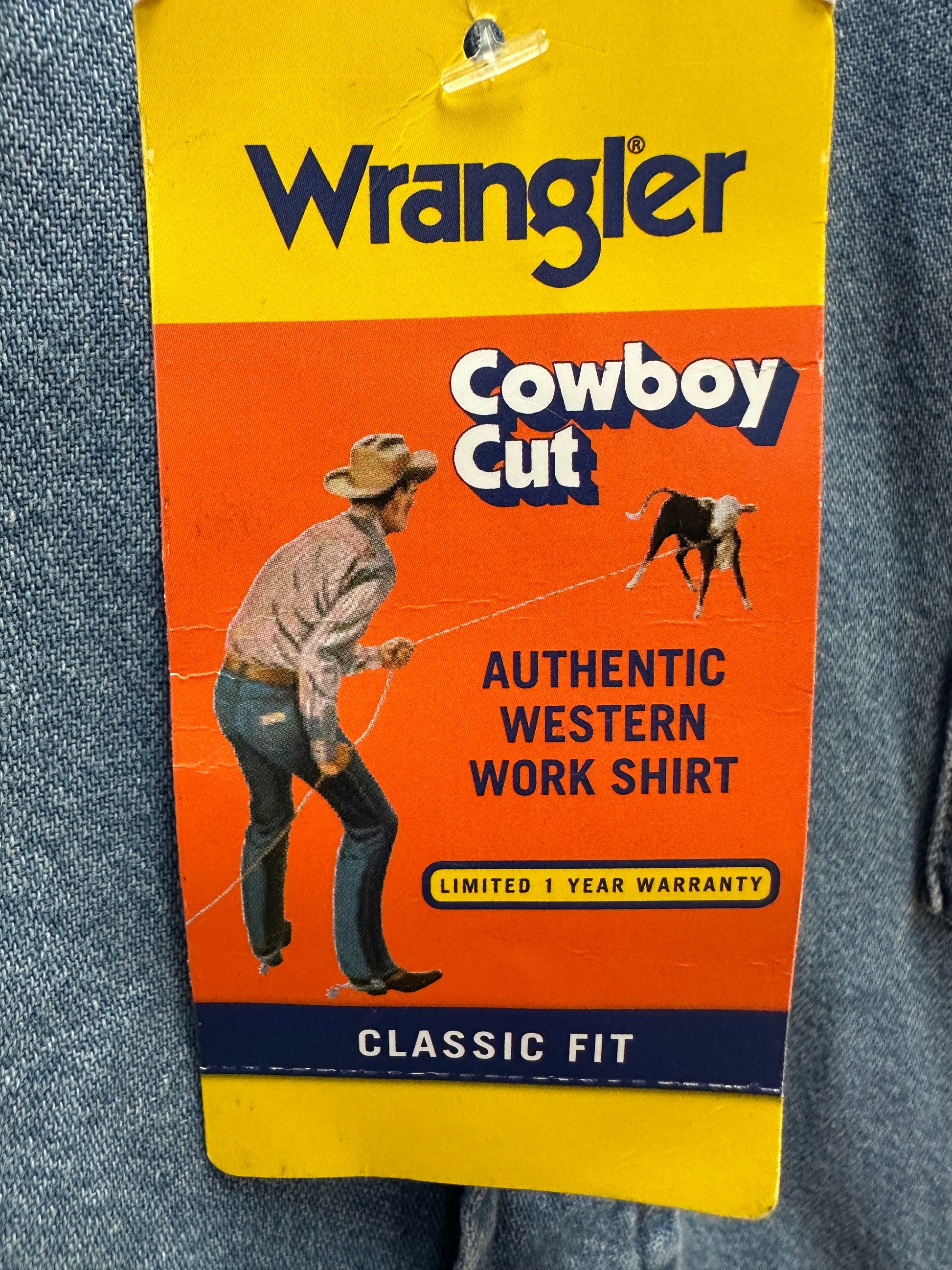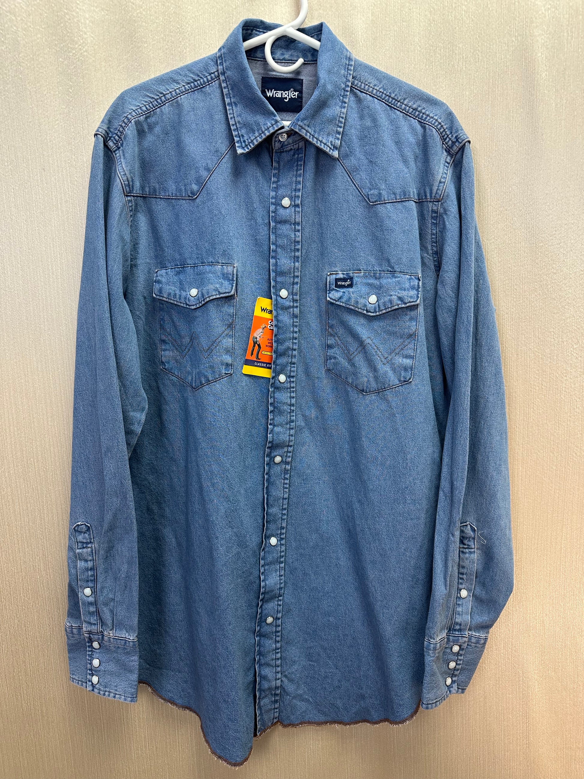 NWT - WRANGLER stonewash blue Denim Cowboy Cut Western Work Shirt - LT