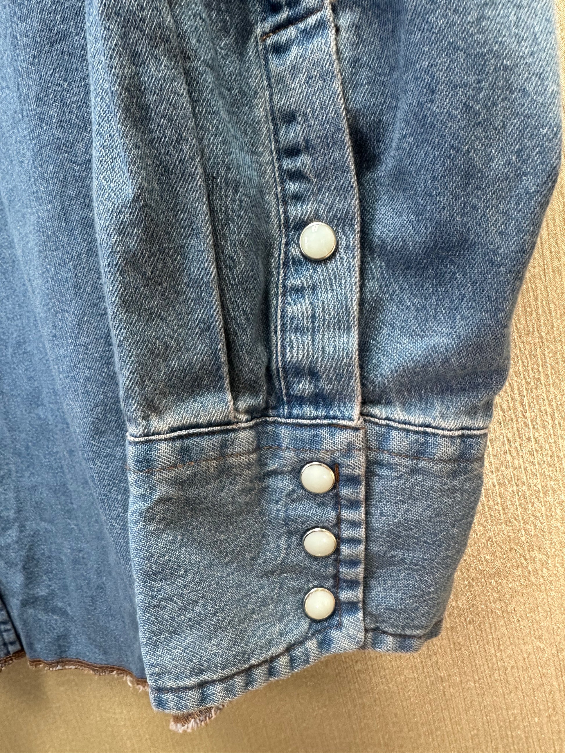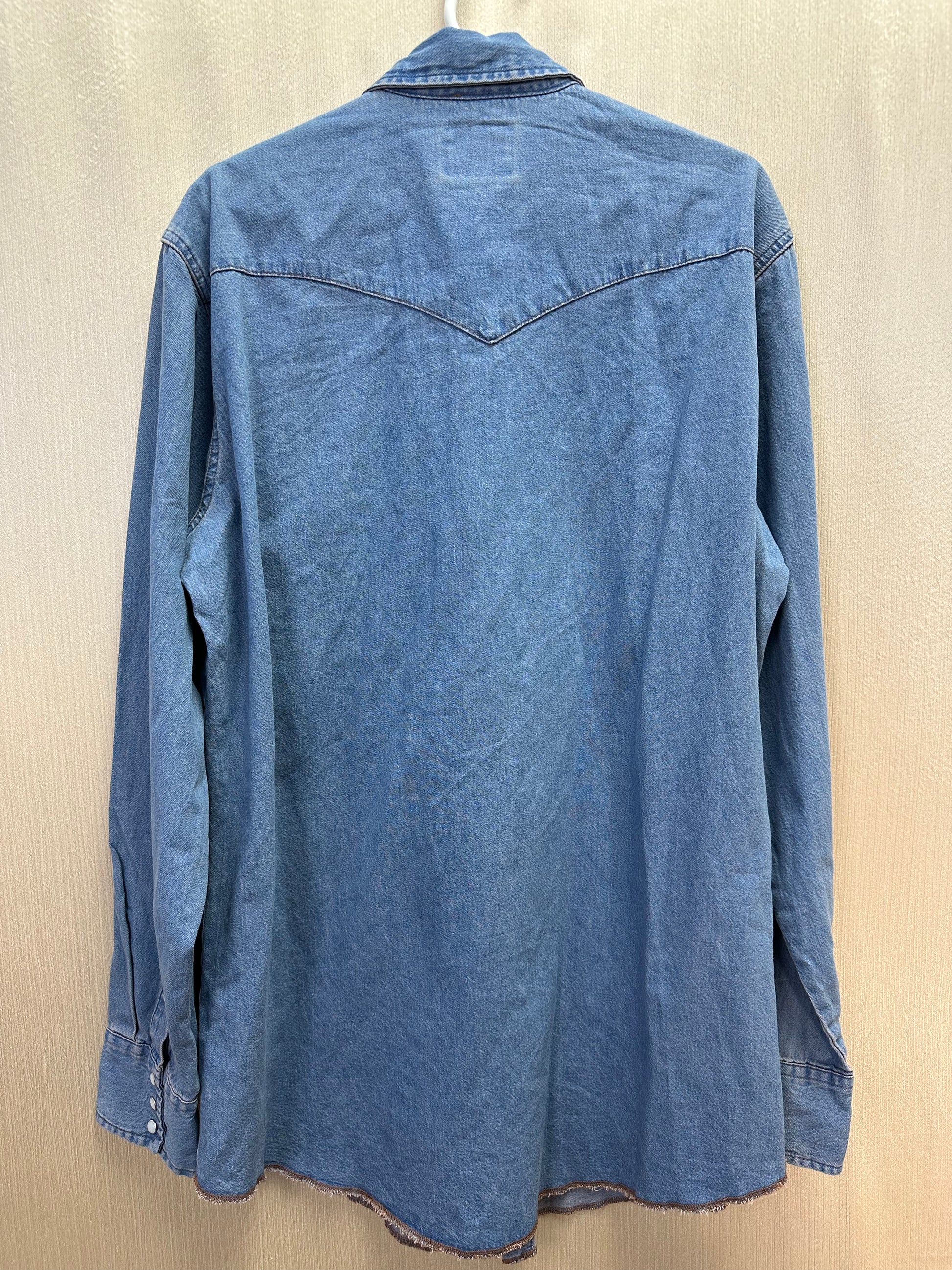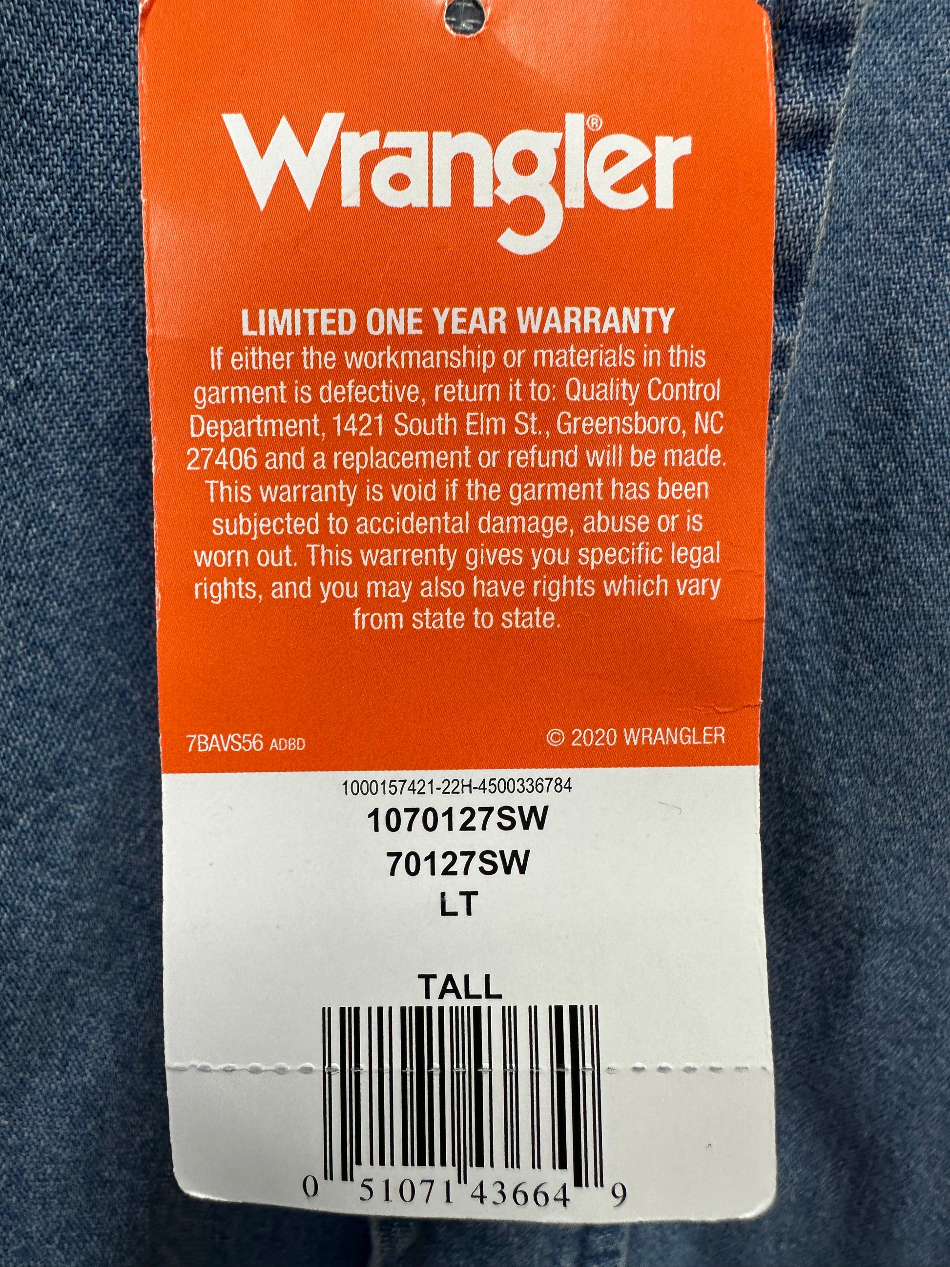 NWT - WRANGLER stonewash blue Denim Cowboy Cut Western Work Shirt - LT