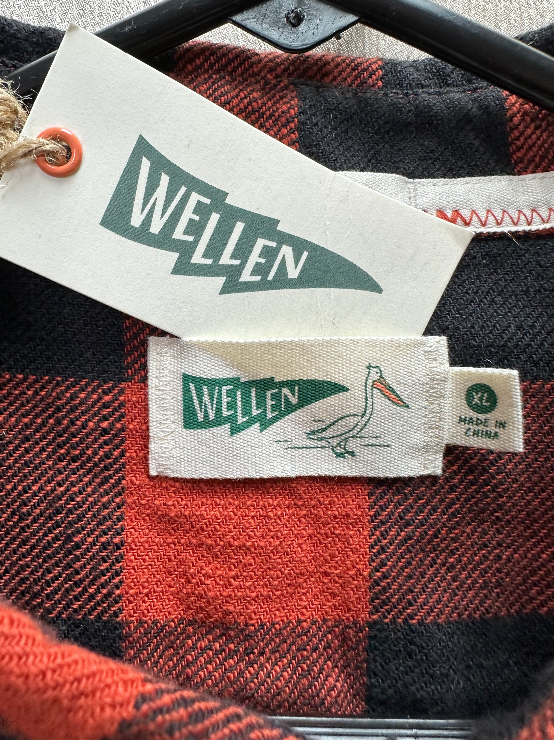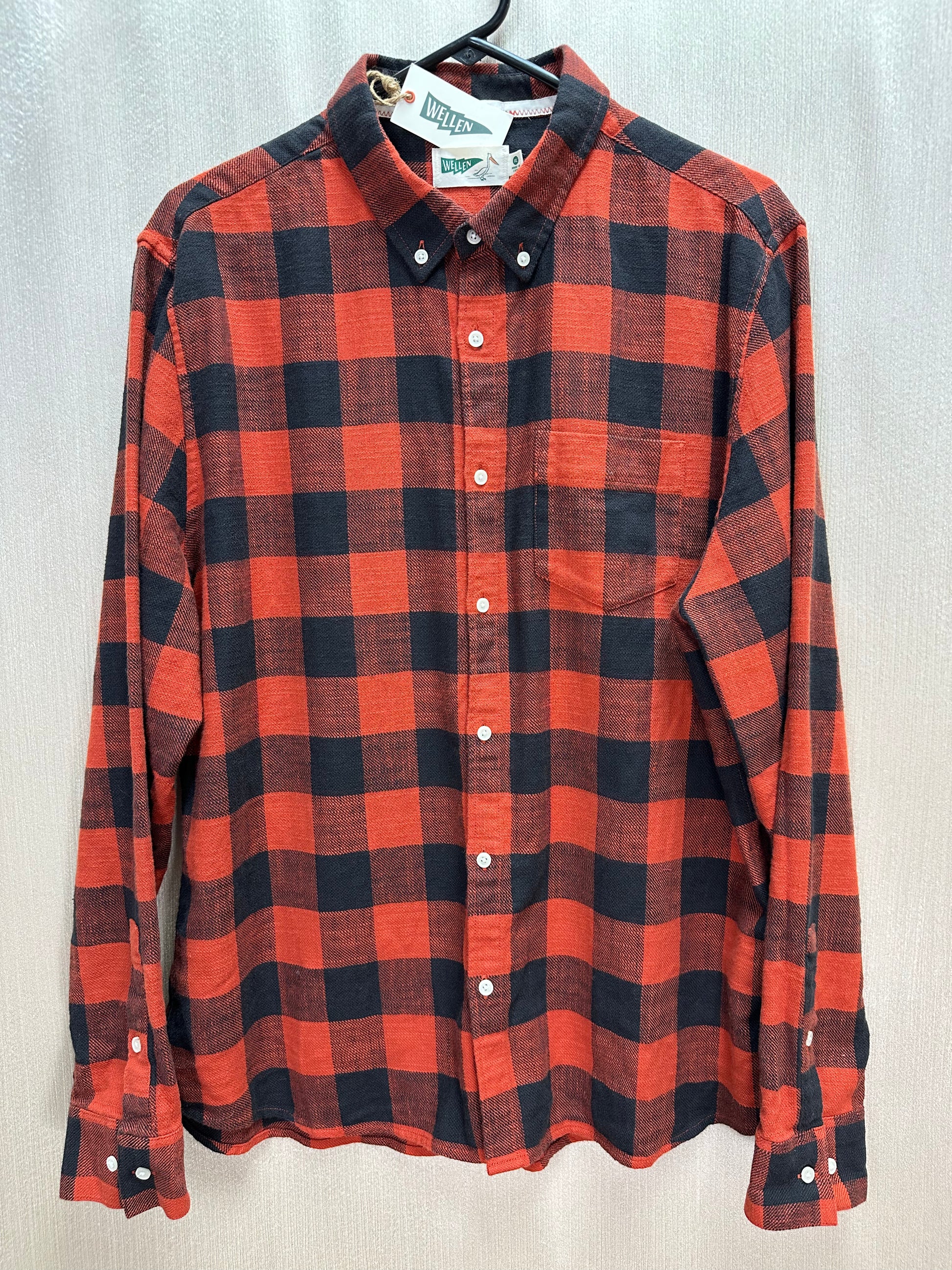 NWT - WELLEN red black Soft Organic Cotton Plaid Button Down Shirt - XL