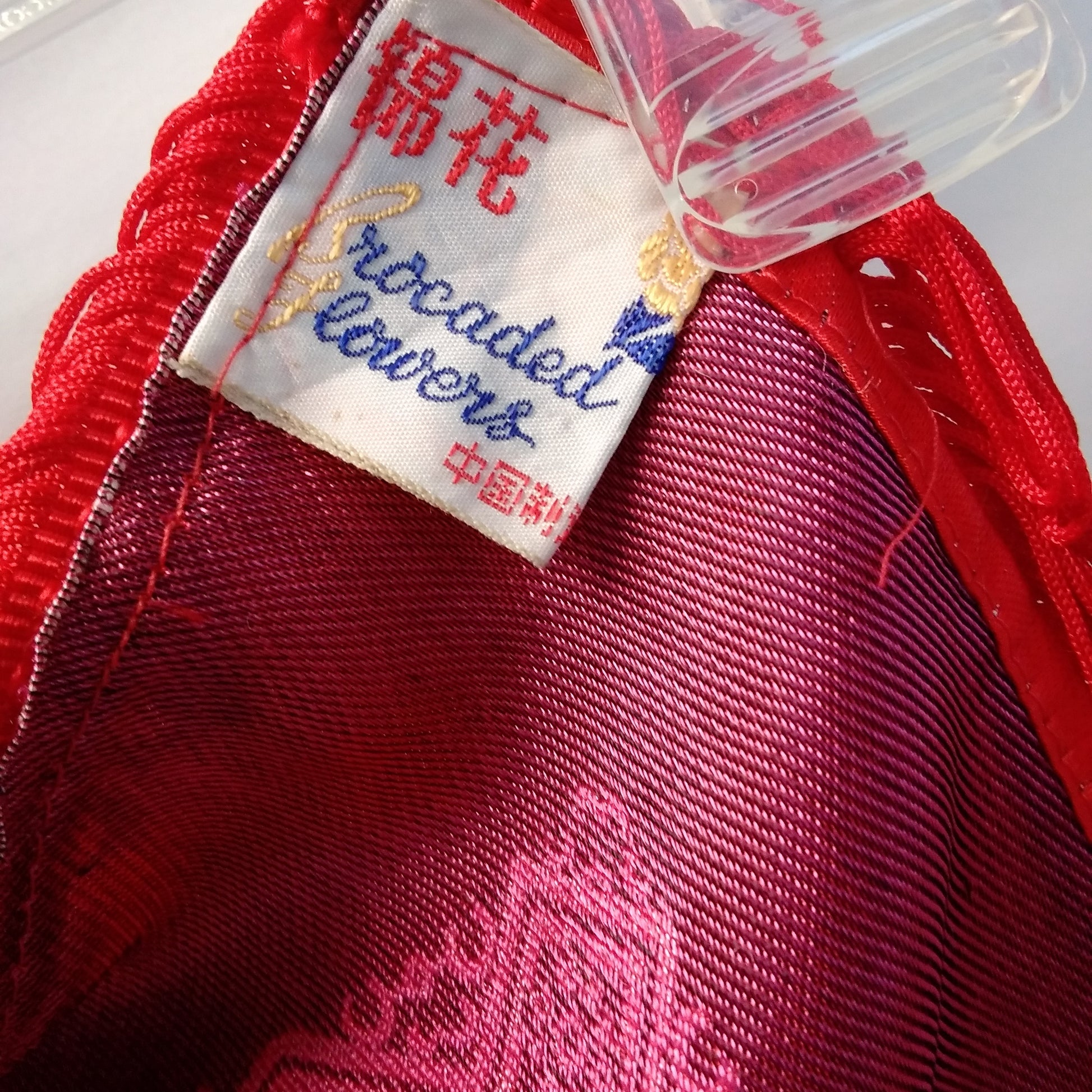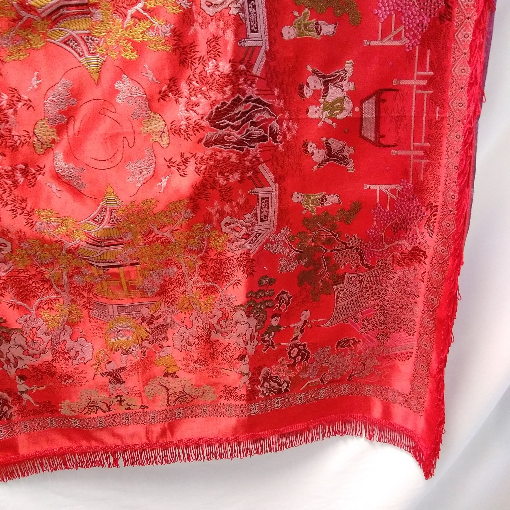 Brocaded Flowers Chinese Silk Embroidered Red Tapestry Cloth With Fringe