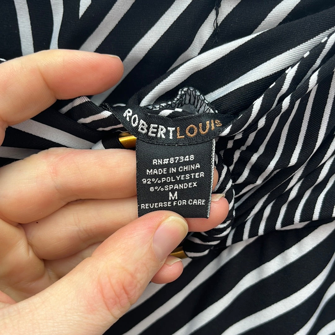 Robert Louis Black White Stripe A-line Midi Skirt -- M