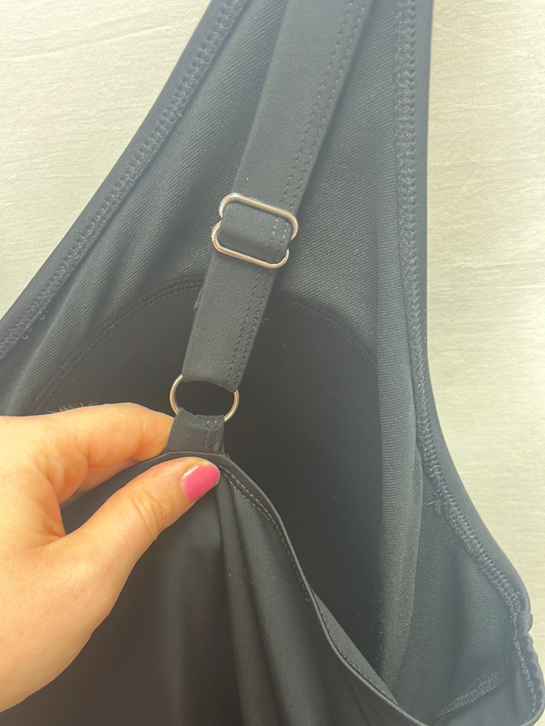 The D & CO. Beach Black Ruched Swim Dress combines style and comfort for confident beachwear. Its flattering ruched design enhances the silhouette while providing comfortable coverage. Crafted for durability and ease, this swim dress offers both functionality and elegance for a polished look by the water. Ideal for those seeking a chic yet supportive swimwear option.