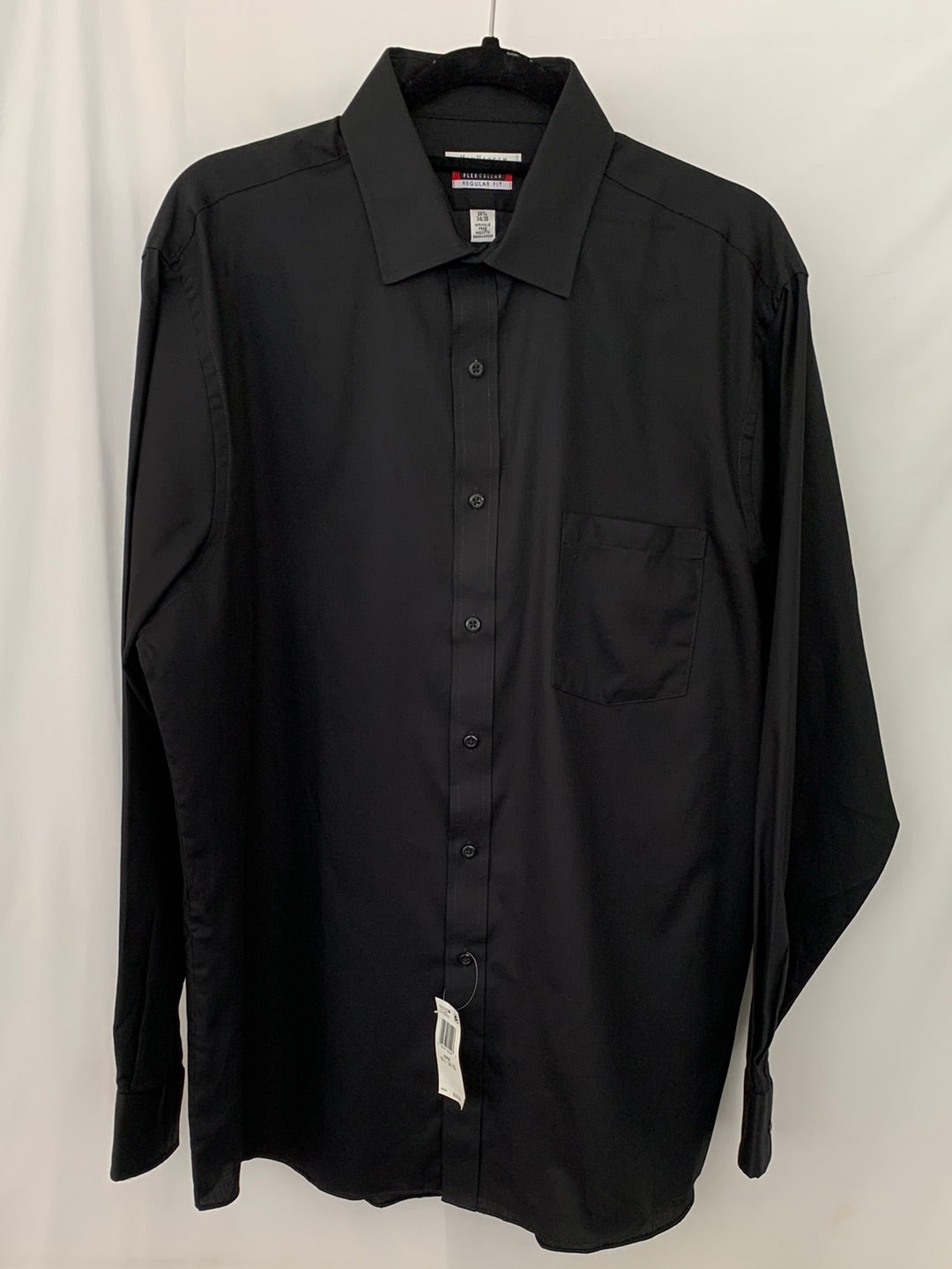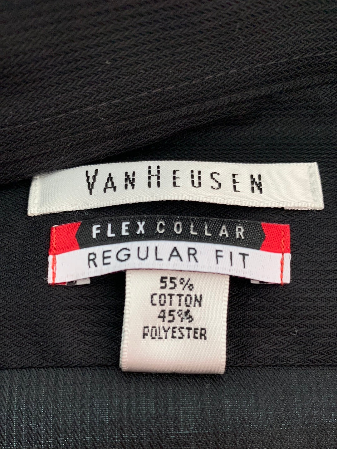 NWT - VAN HEUSEN Black Flex Collar Regular Fit Wrinkle Free Dress Shirt - Size 16.5 34/35