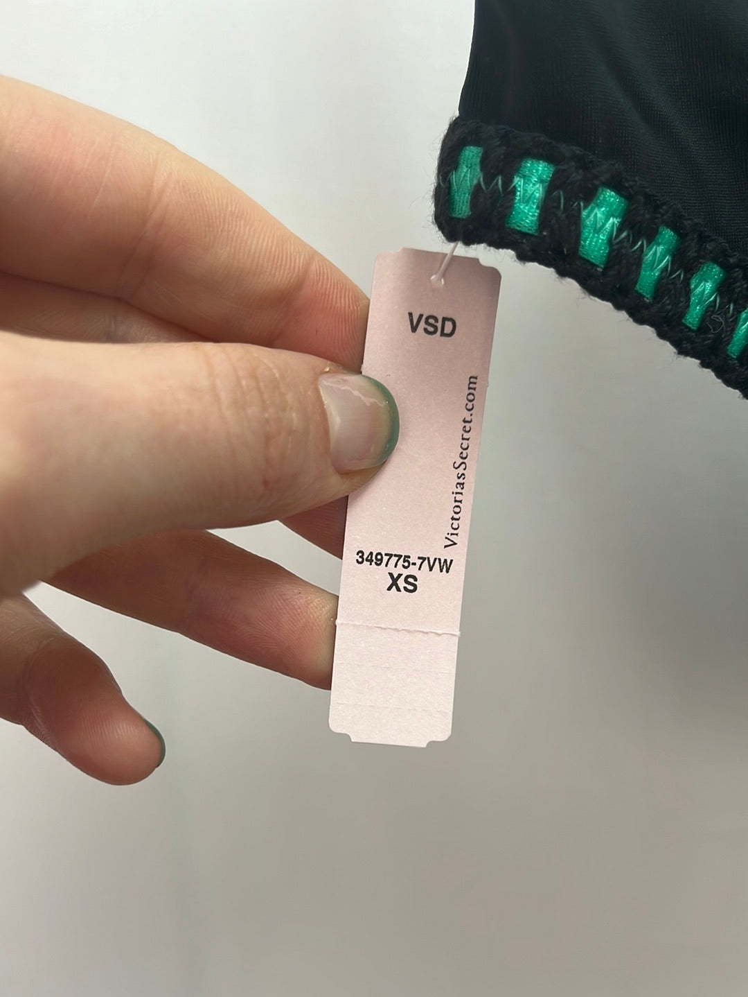 NWT -- VICTORIA'S SECRET Black Green Trim Cheeky Bikini Bottom -- XS
