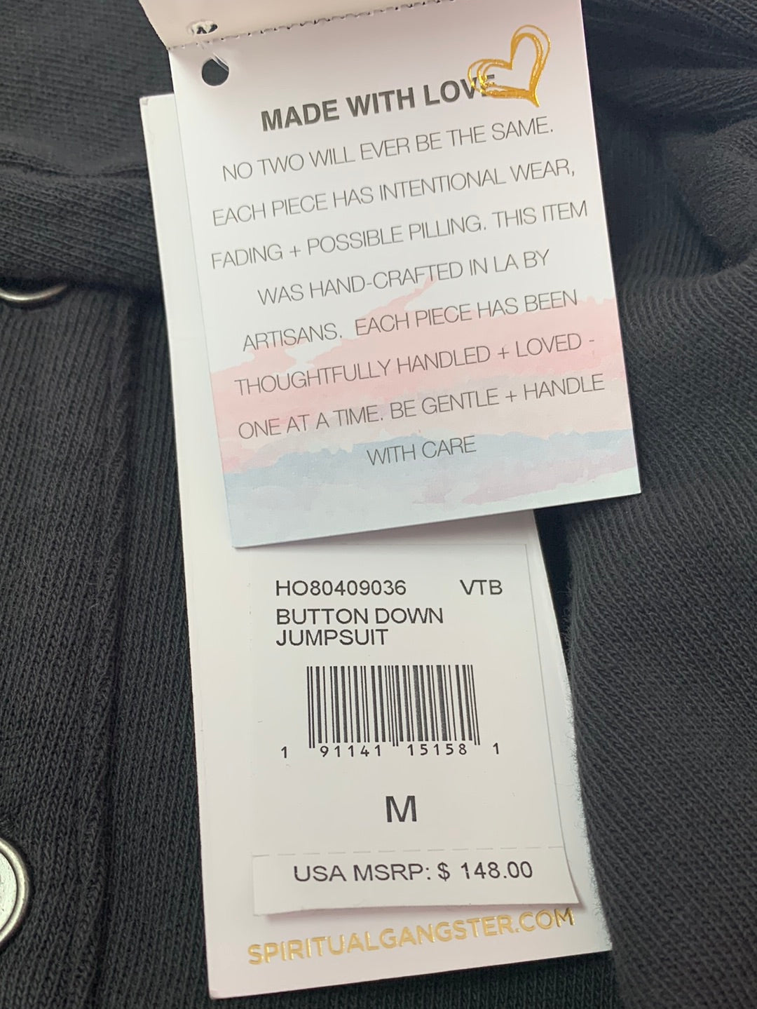 NWT - SPIRITUAL GANGSTER vintage black Long Sleeve Button Down Jumpsuit - Medium