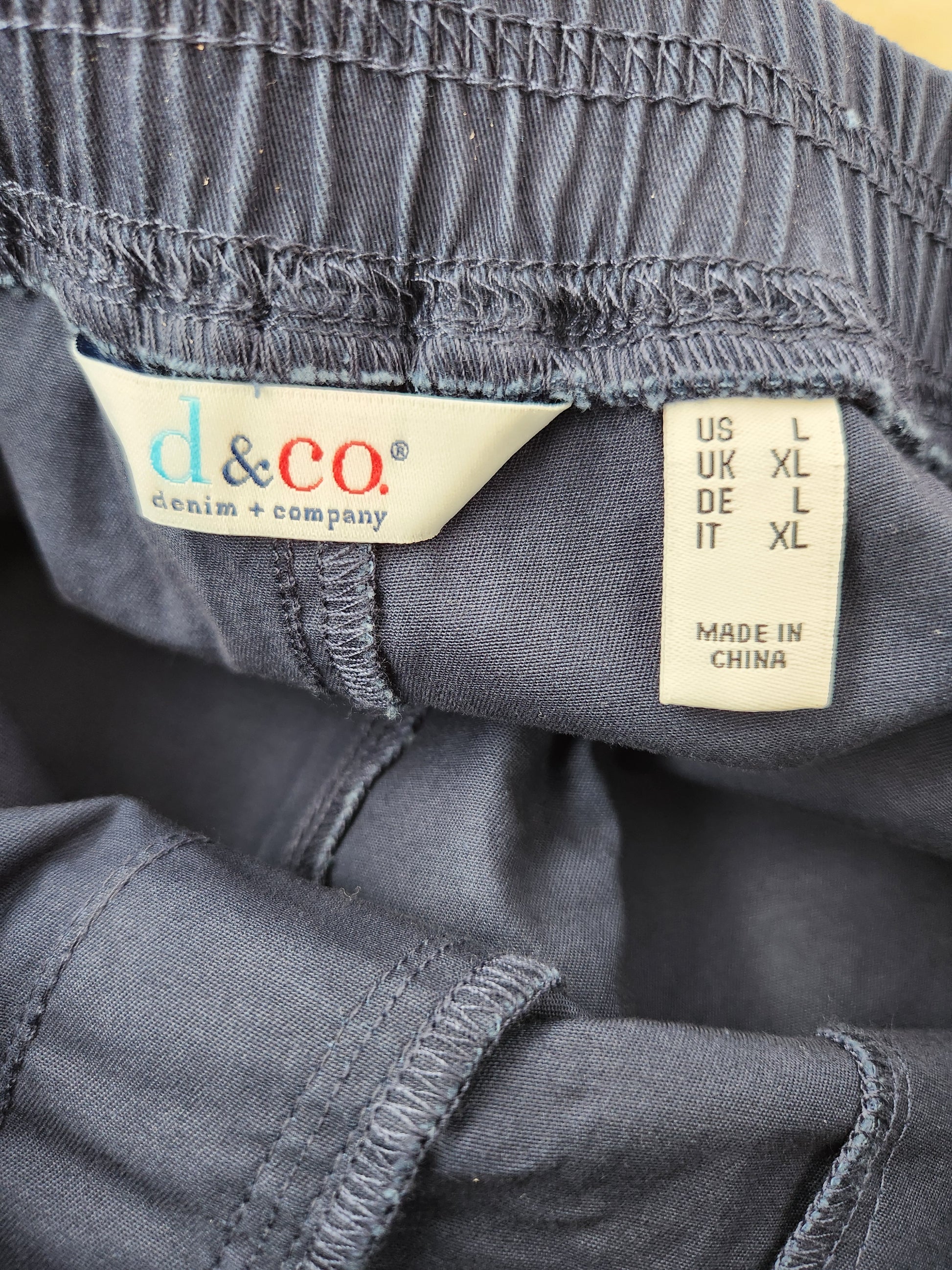 D&Co Navy Elastic Waistband Capri Pants - Size: L