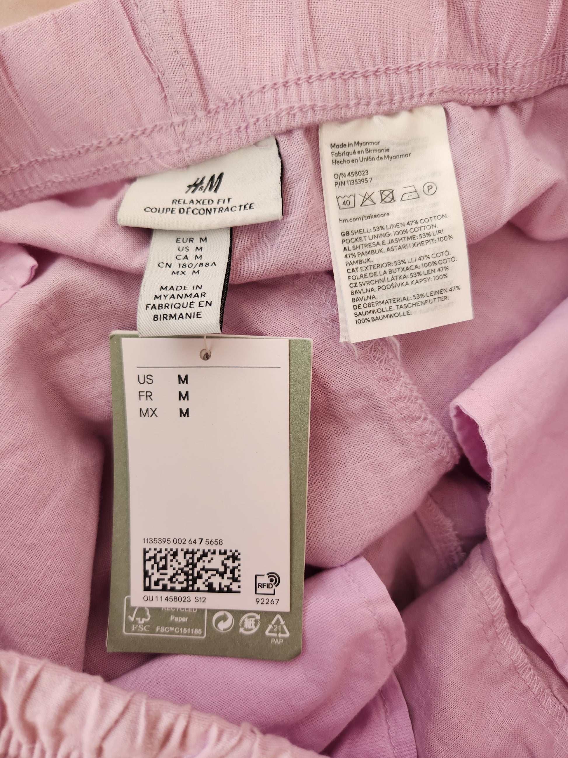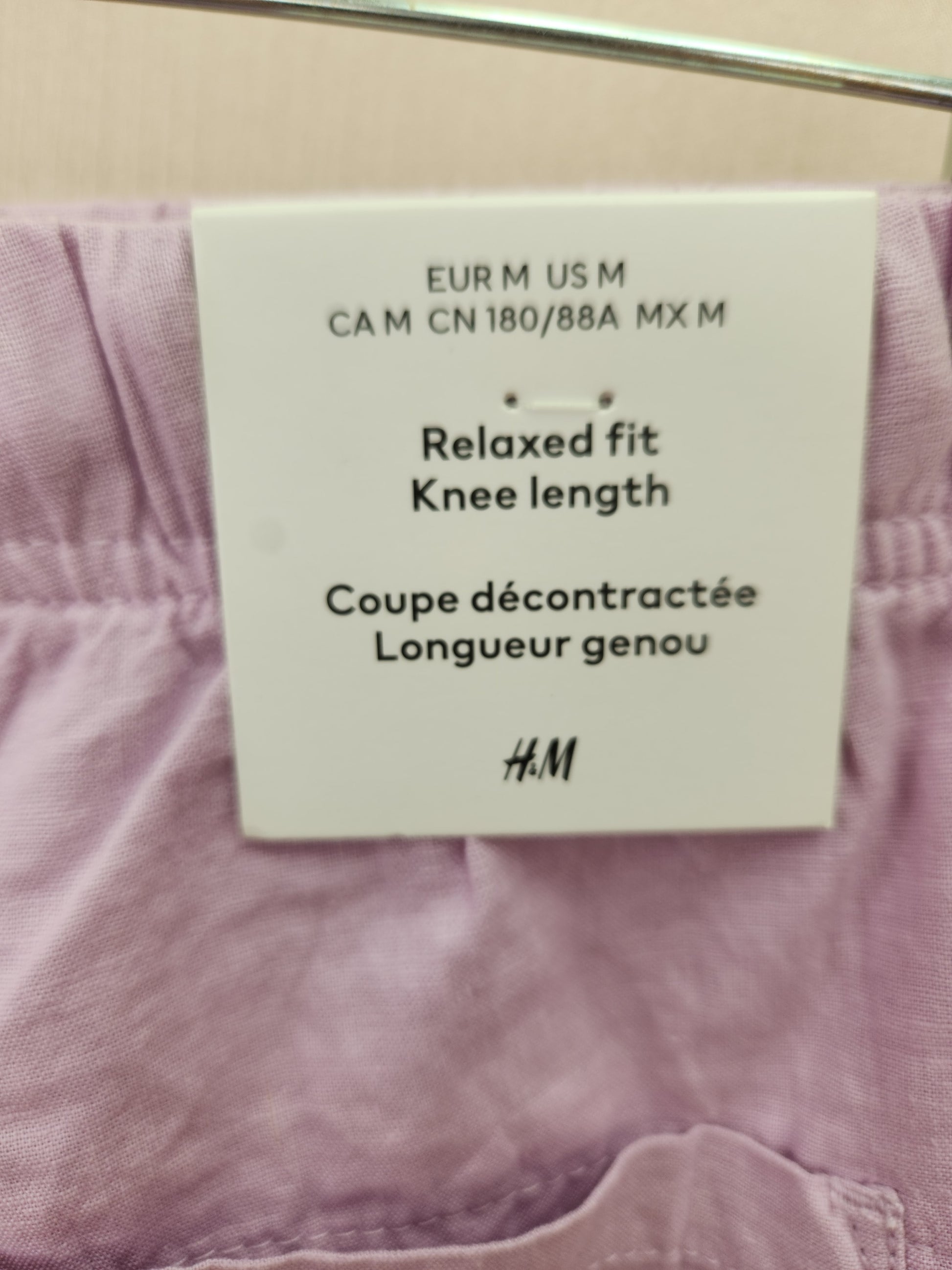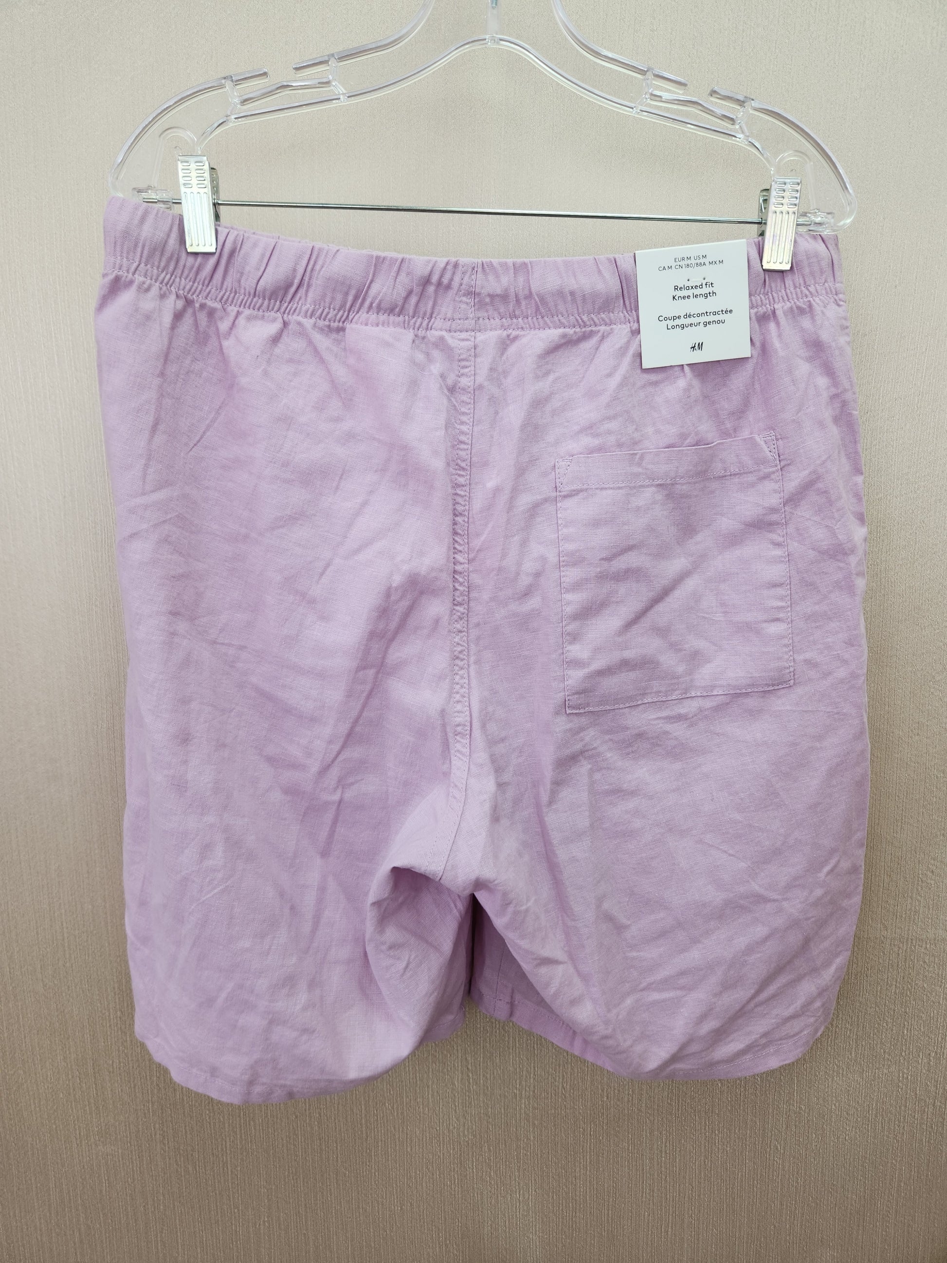 H&M Men's Light Purple Relaxed Fit Knee Length Linen Blend Drawstring Shorts - Size: M