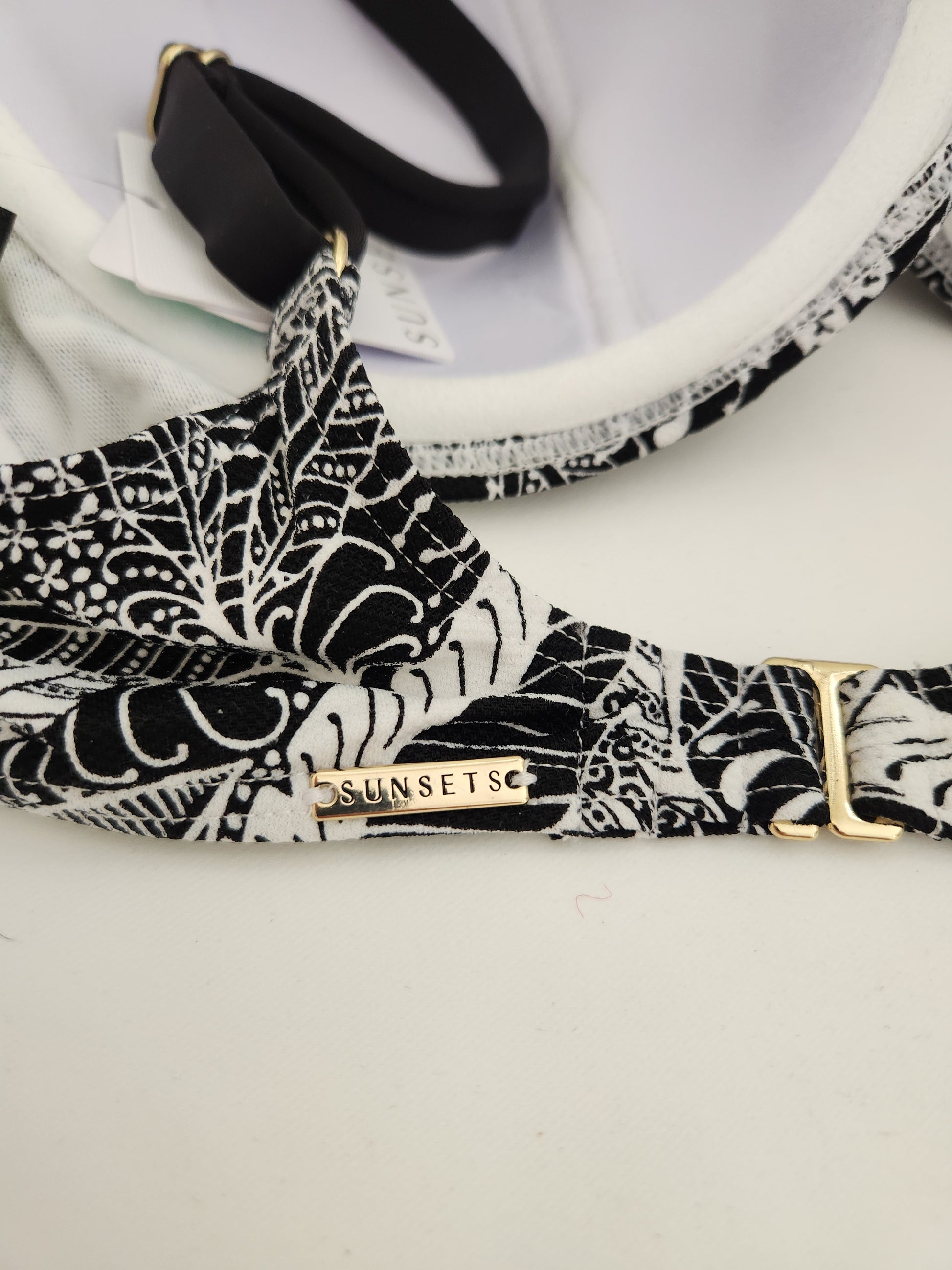 The Sunsets Carmen Underwire Top in size 36DD offers structured support and a flattering fit, ideal for enhanced comfort and confidence. Paired with the Hannah High Waist Bottom in Large, this set provides stylish coverage and a classic silhouette, perfect for a secure and elegant swimwear experience. Crafted to combine functionality with timeless design, this duo is suited for those seeking both support and style in their swimwear collection.