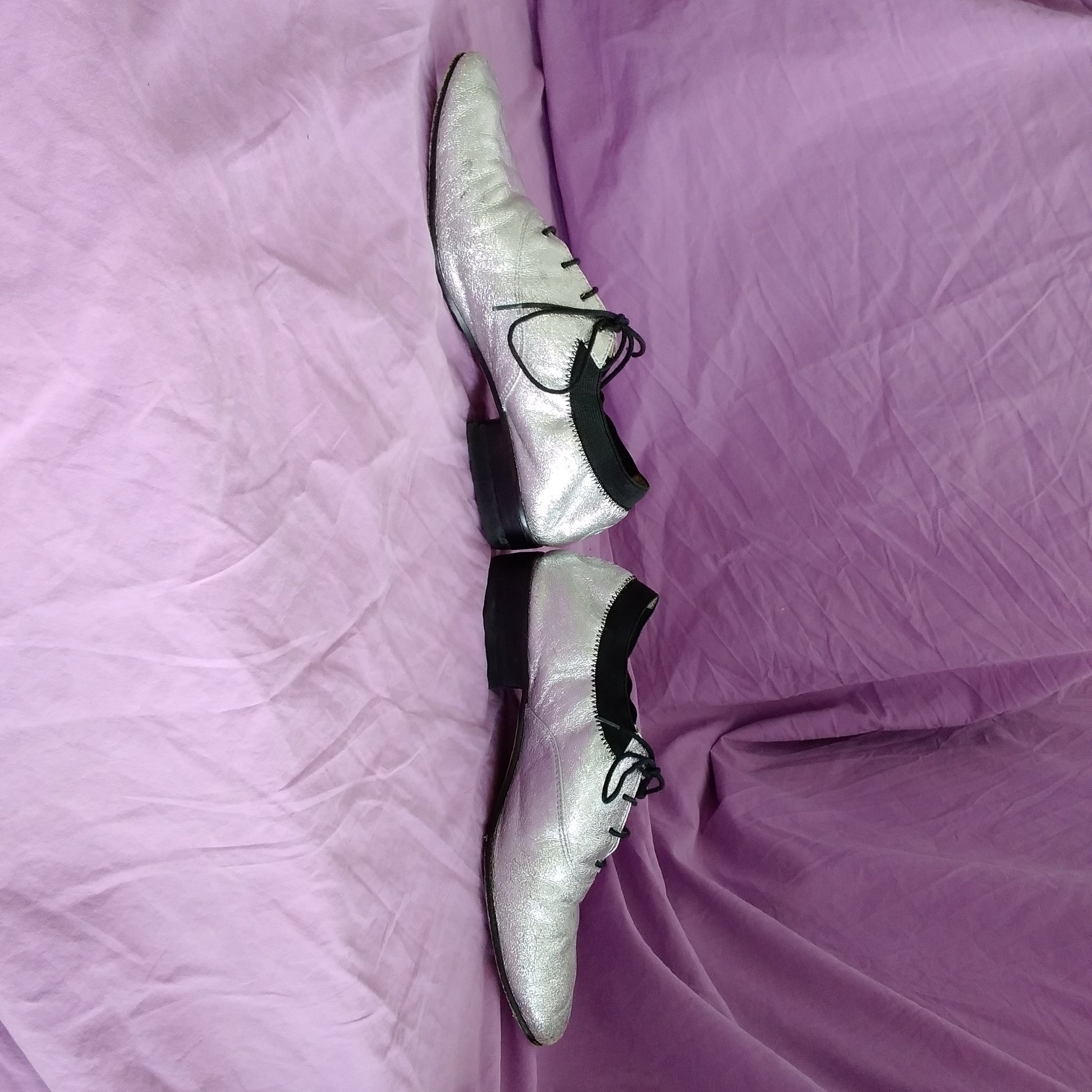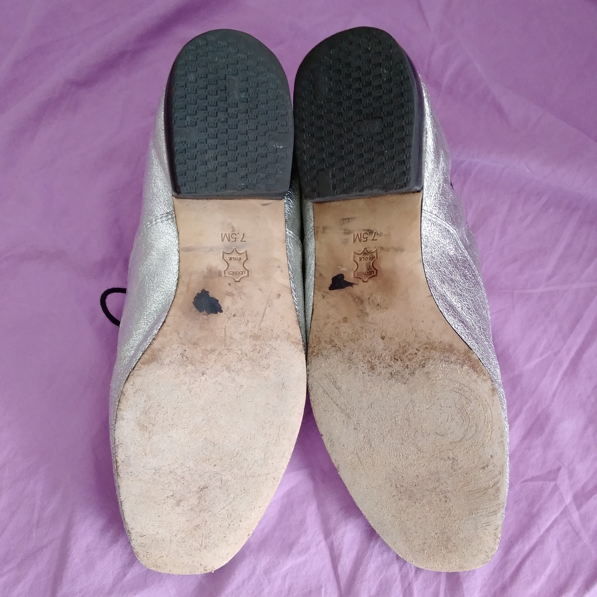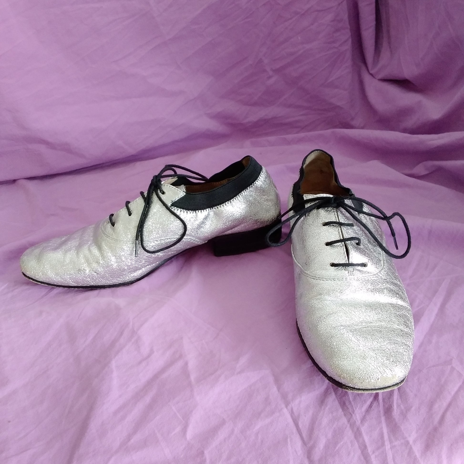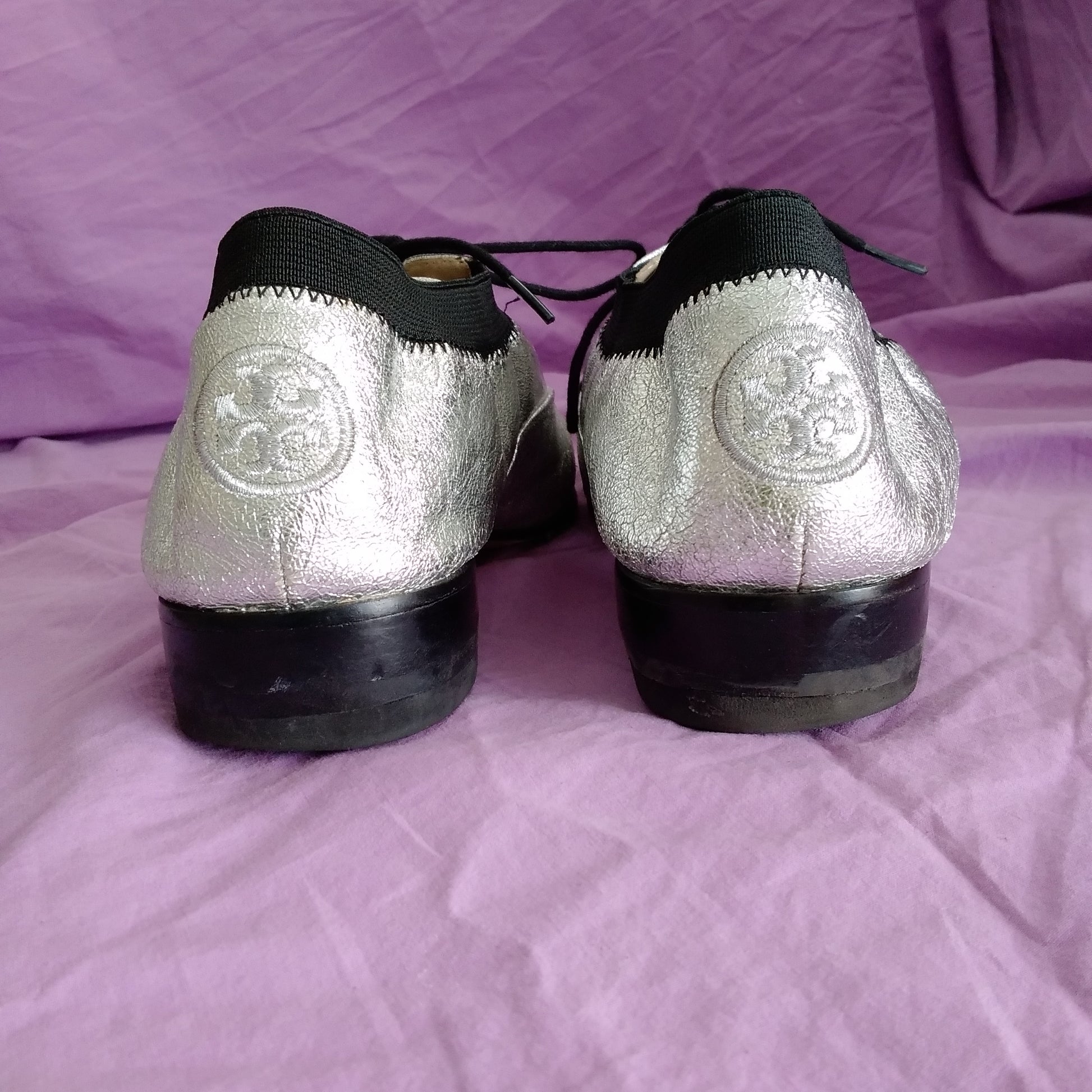 Tory Burch Silver Metallic Leather Bombe Oxford Shoes - Size 7.5