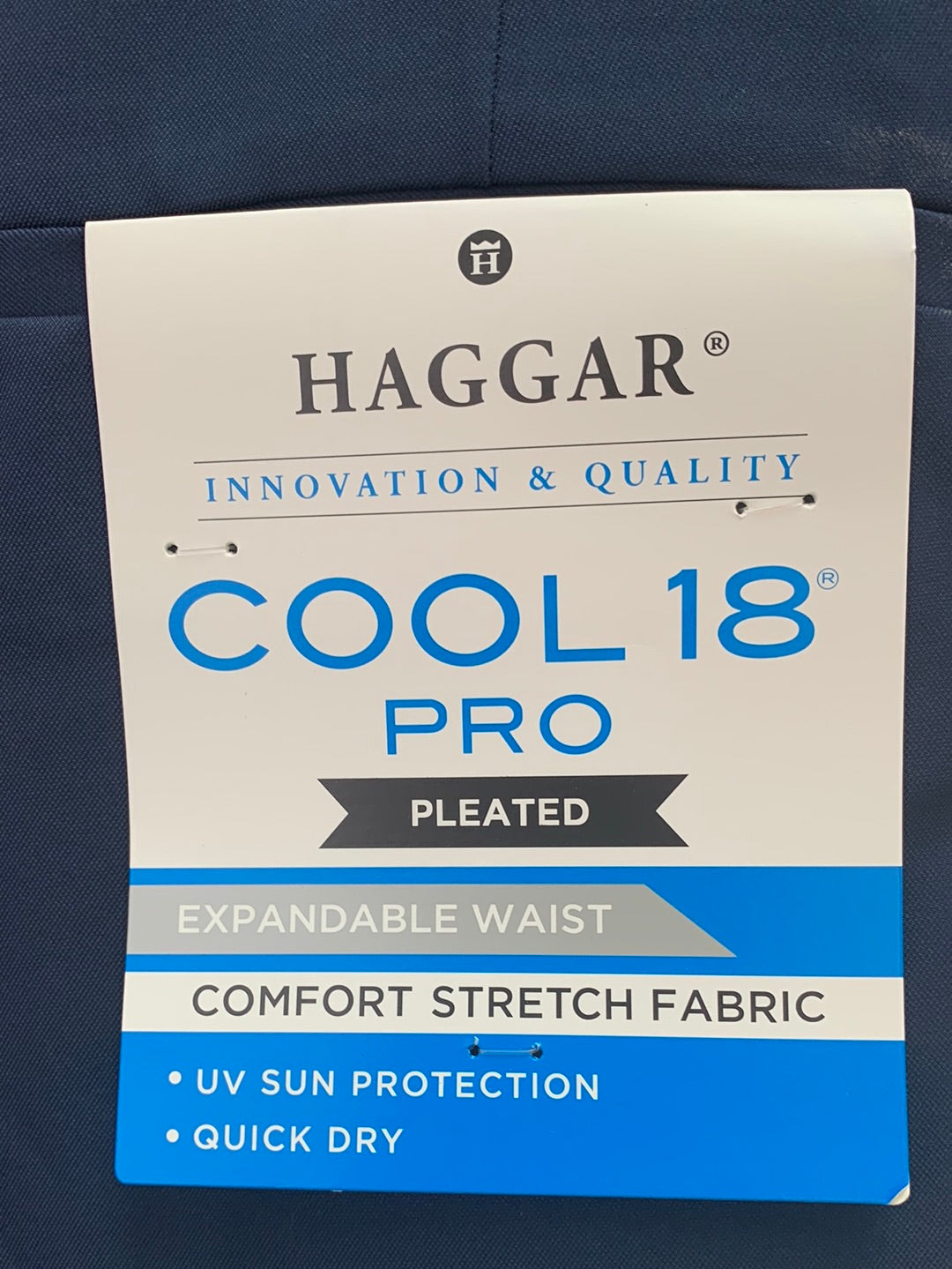 These NWT HAGGAR navy Cool 18 Pro Pleated Golf Shorts are designed for maximum comfort and sun protection. The 4-way stretch and expandable waist offer a perfect fit, while the quick dry fabric helps keep you dry and comfortable. With UV protection, you'll stay safe in the sun.