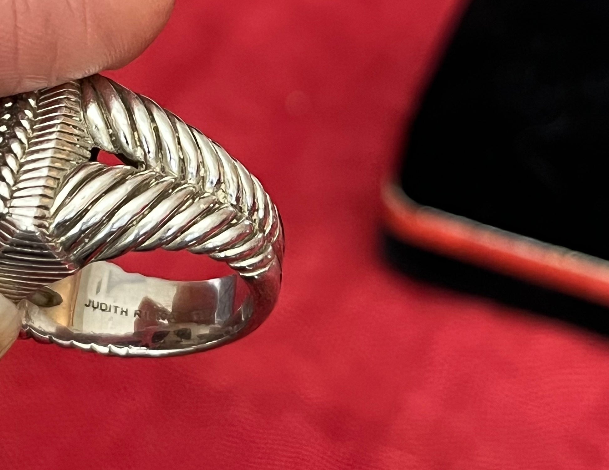 Make a statement with this beautiful sterling silver and blue topaz Judith Ripka ring. Ring is in excellent condition, with average wear, and measures a 6.5 ring size.