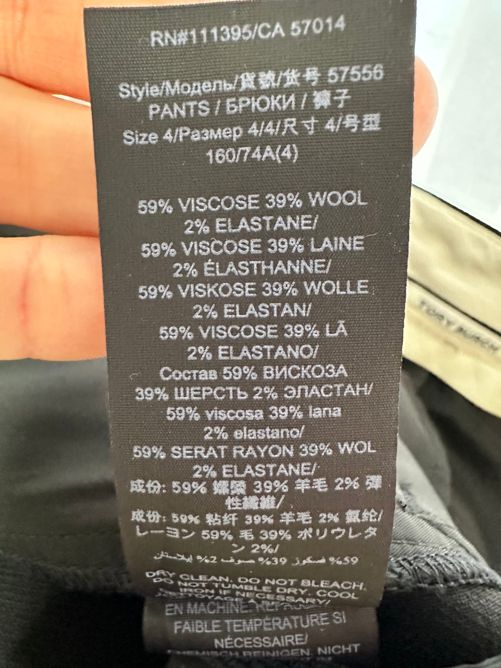 Upgrade your professional look with these TORY BURCH black Mid Rise Boot Cut Pants. Made with a luxurious Viscose and Wool blend, these pants provide both comfort and style. Perfect for the office or any formal occasion.