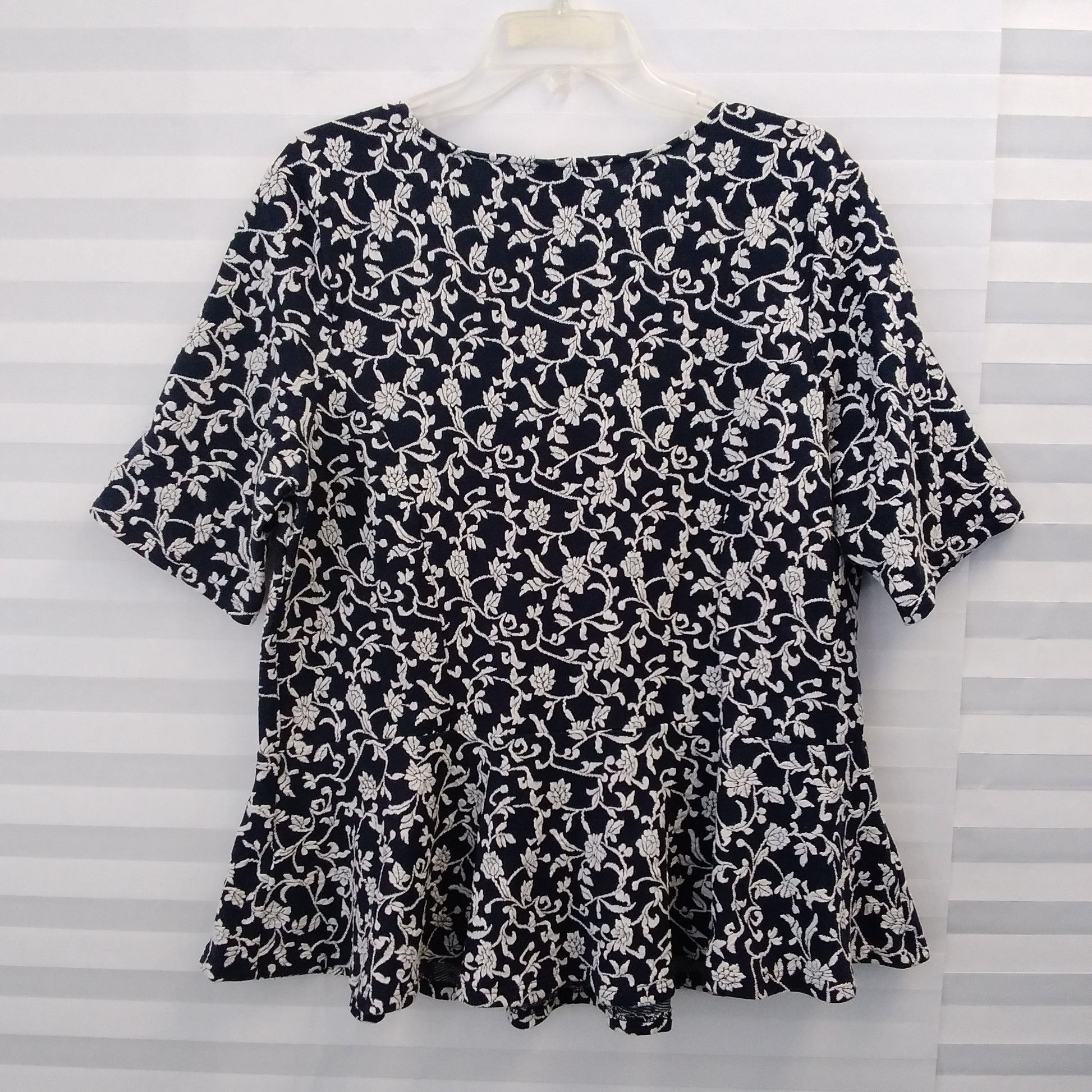 Bobeau Blue White Floral Short Sleeve Top - 1X