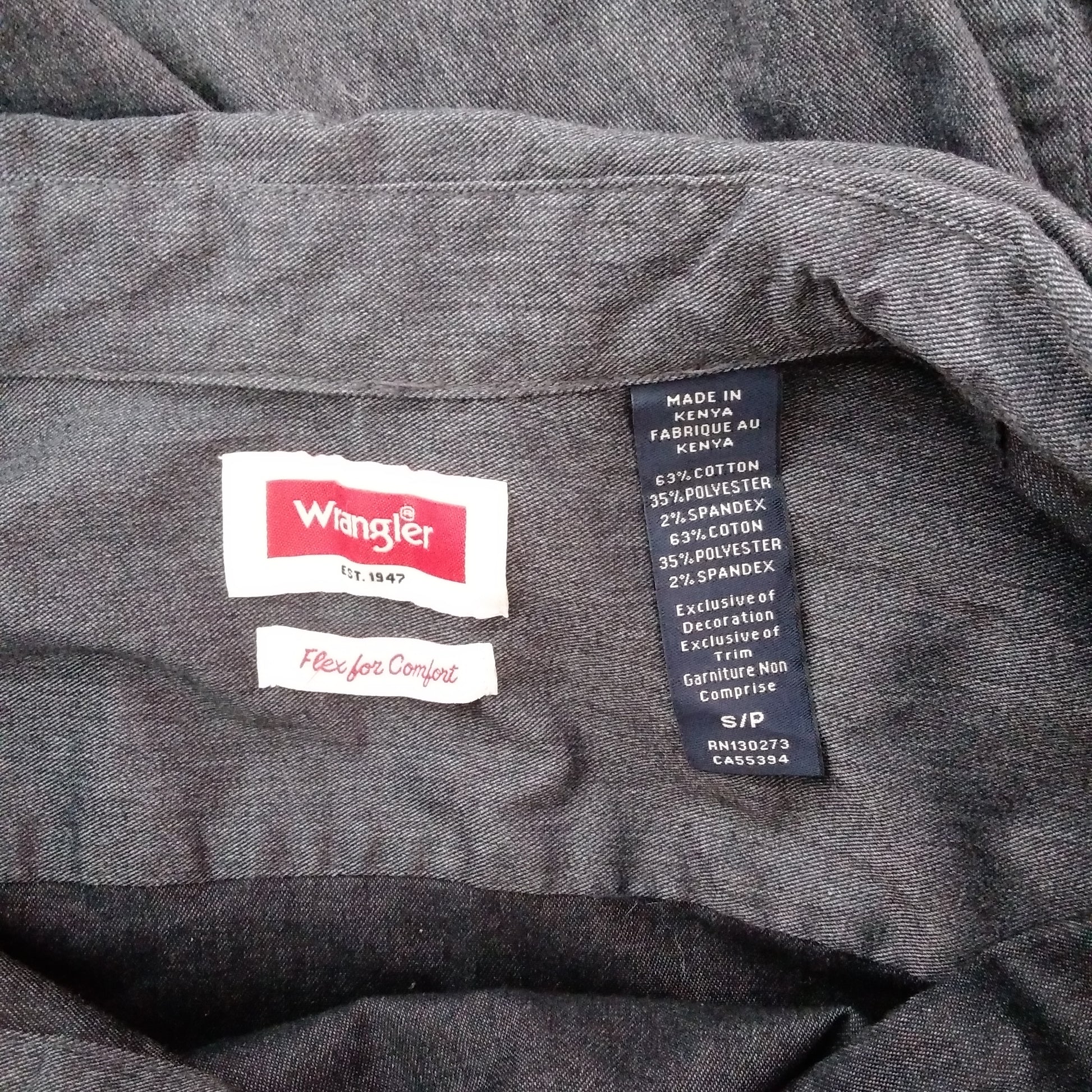 NWT - Wrangler Comfort Flex Dk. Gray Denim Twill Button Up Shirt - S
