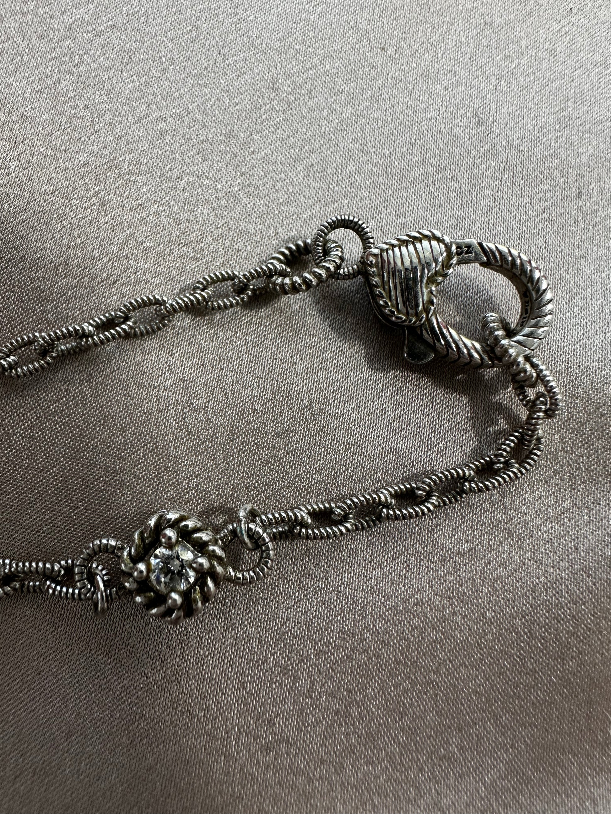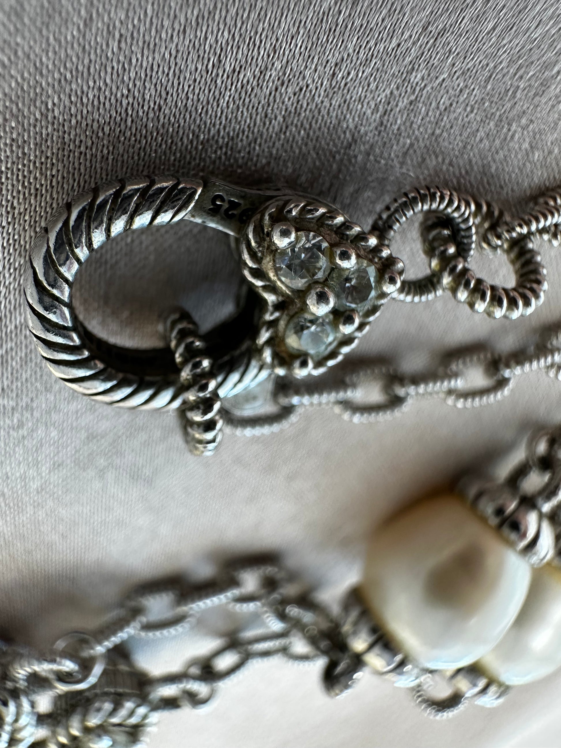 JUDITH RIPKA 925 Sterling Chain Link Pearl CZ Cubic Zirconia Necklace - 21.75"