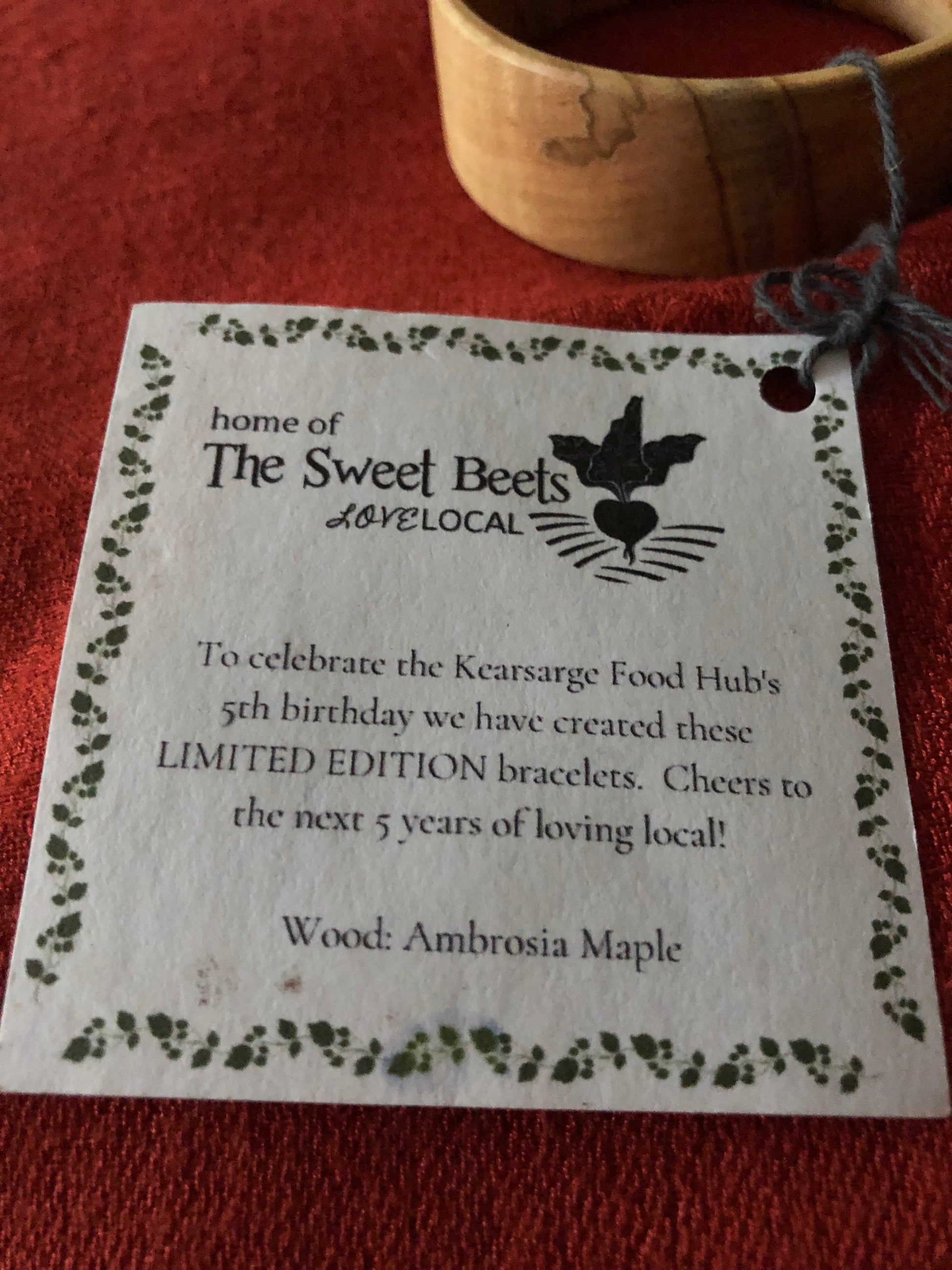 Beautiful limited edition wooden bangle celebrating the Kearsarge Food Hub's (www.kearsargefoodhub.org NH) 5th birthday. Bangle is made from Ambrosia Maple and is NWT.