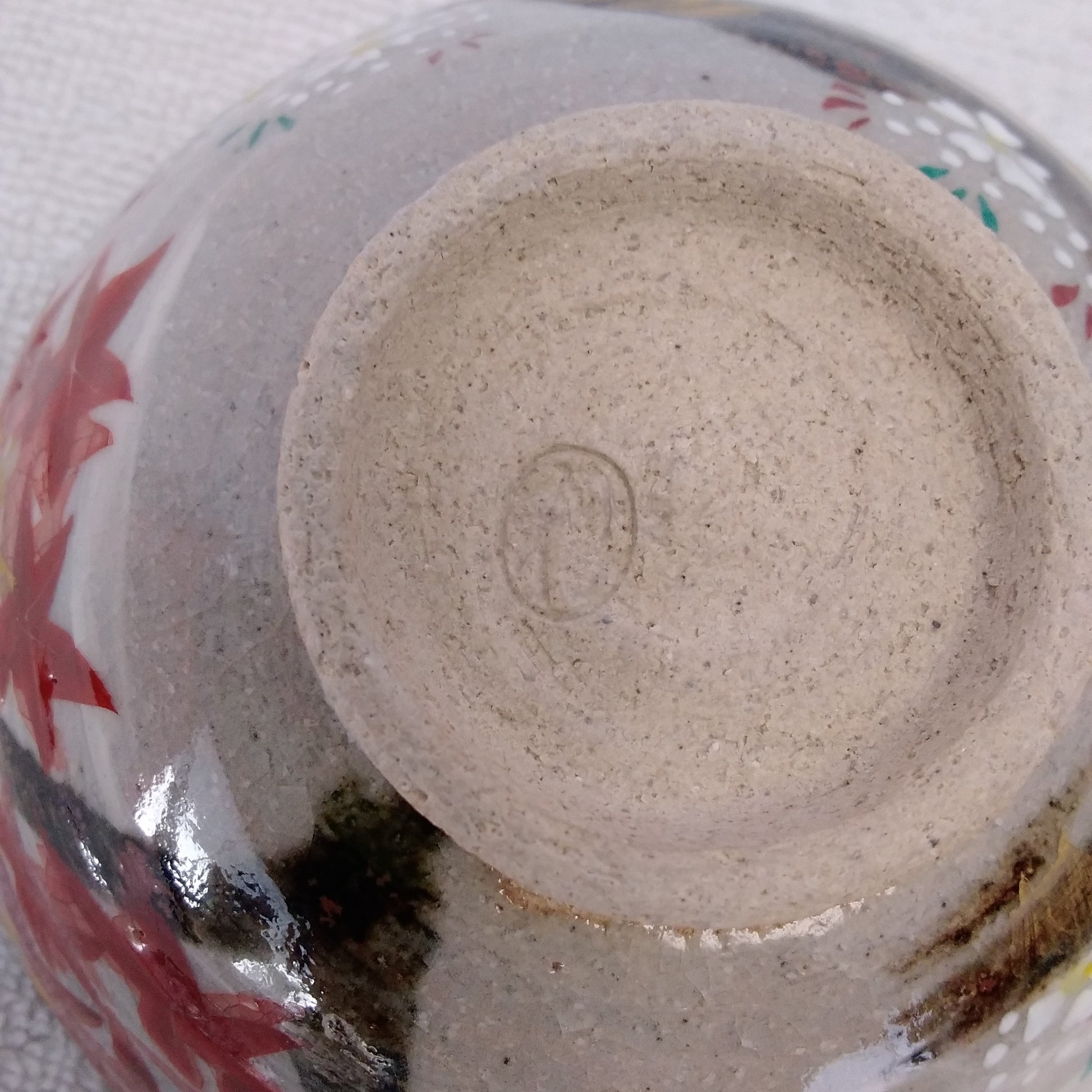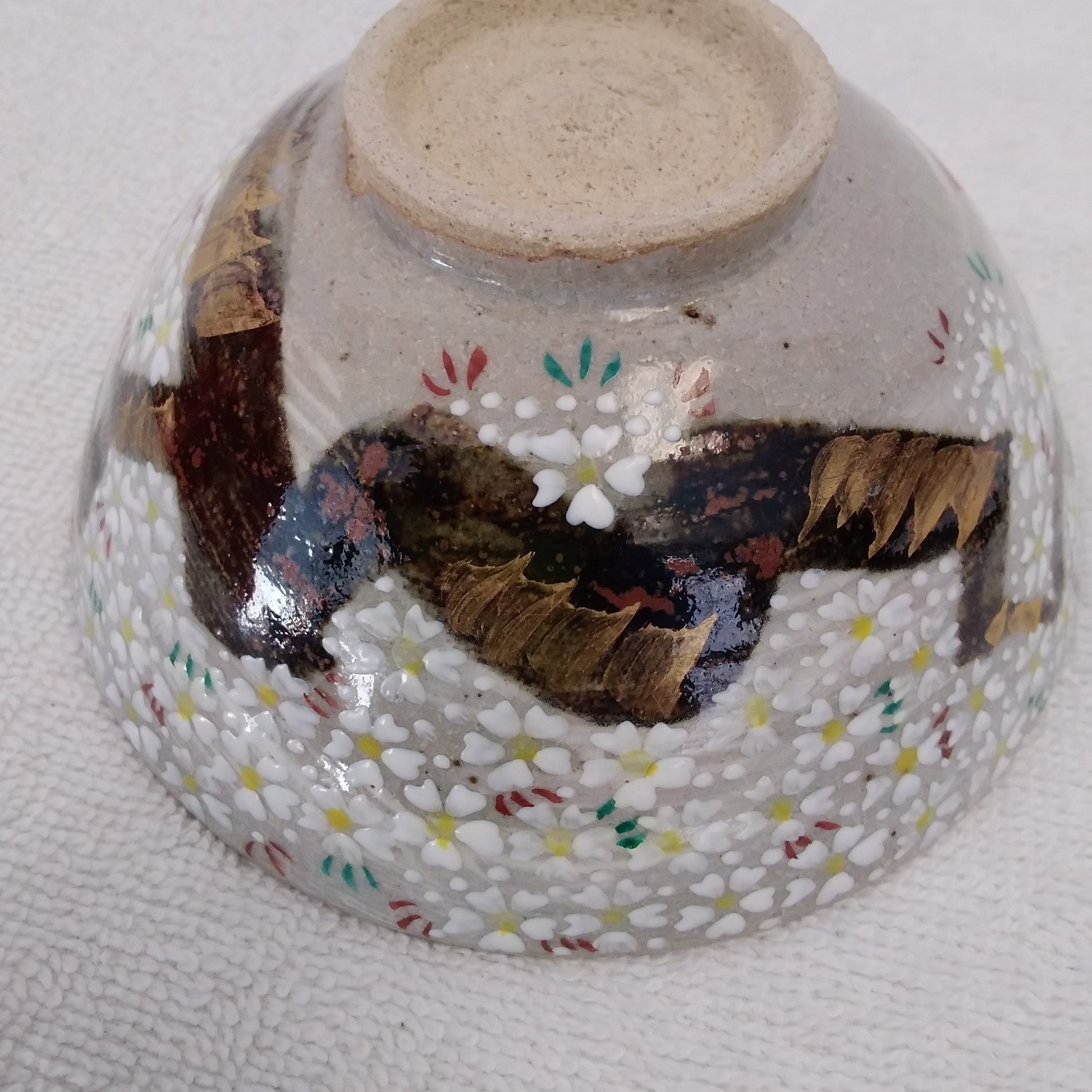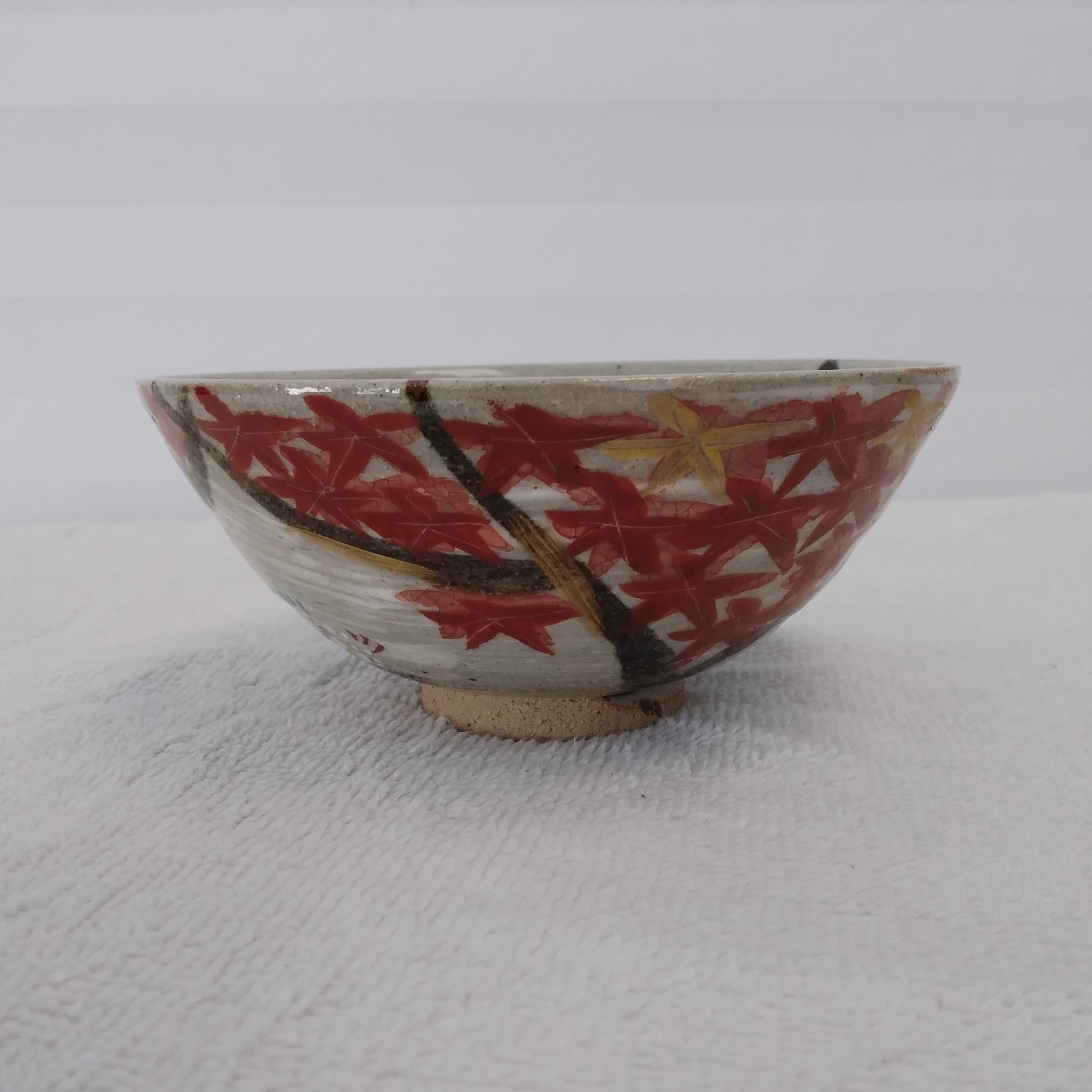 Hand-Painted Japanese Cherry Blossom and Maple Leaf Rice Bowl with Pottery Stamp on Bottom