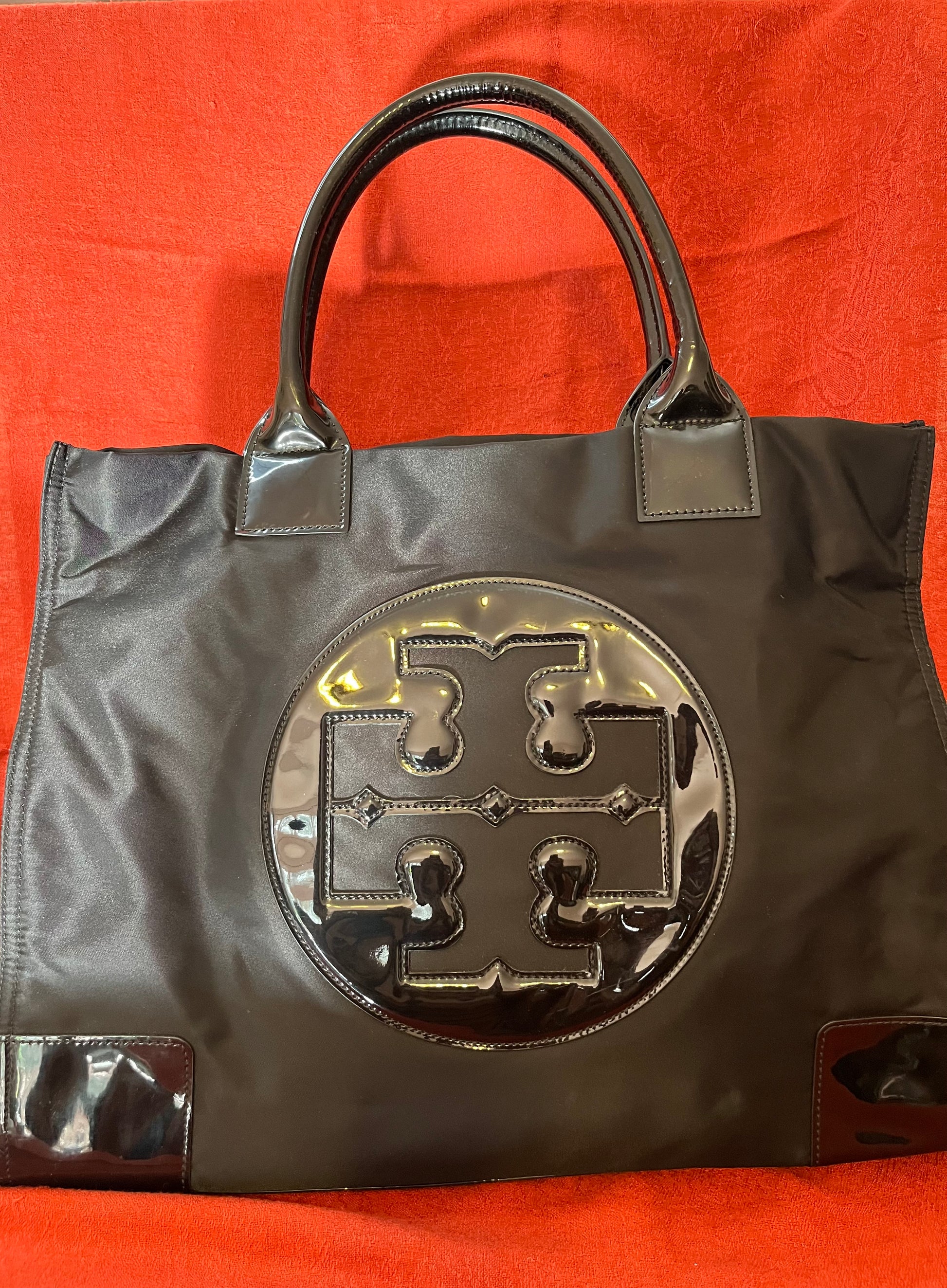 Black Nylon and Patent Leather Tory Burch Large Tote