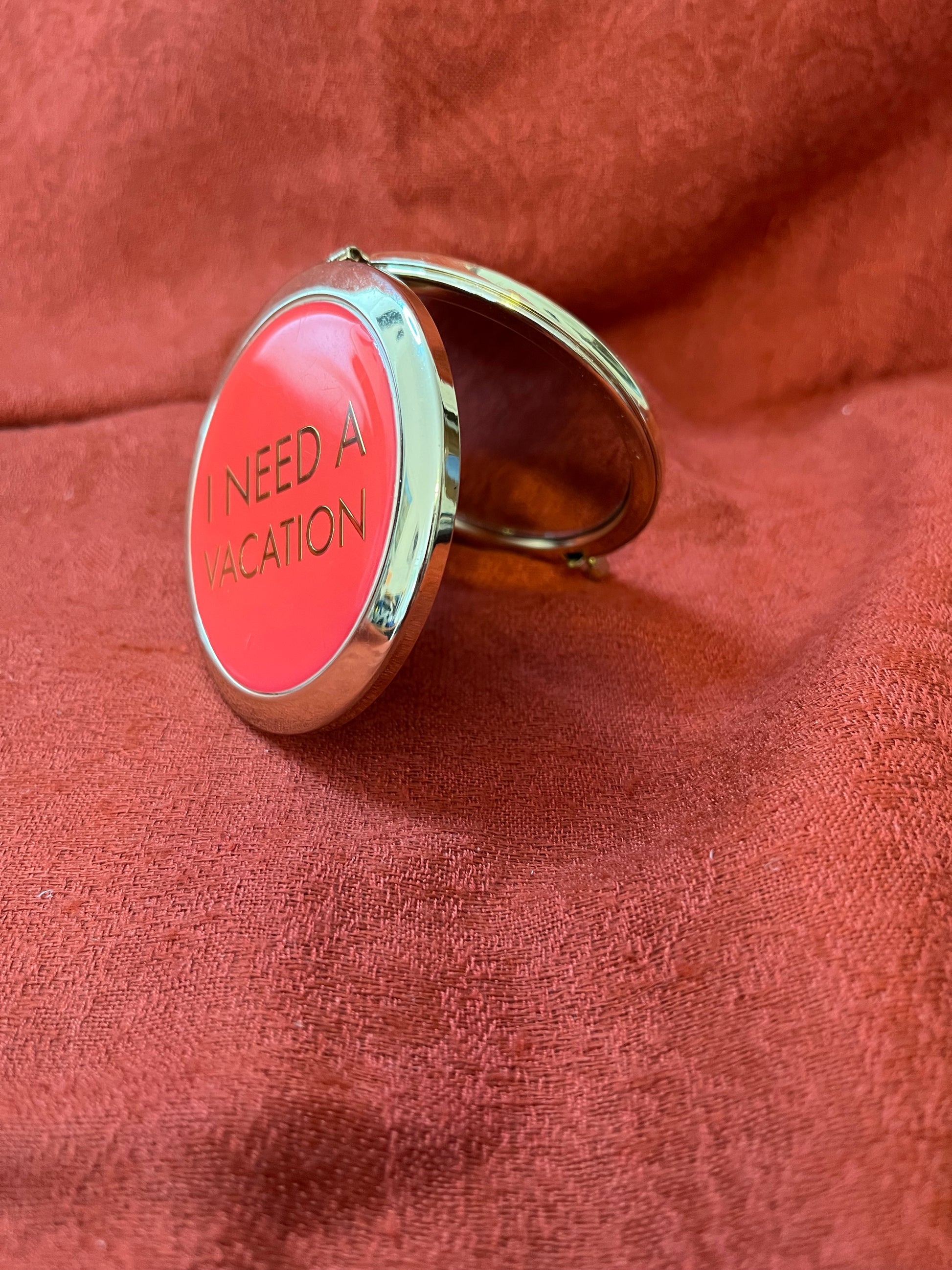 Cute little fun item to add to your purse! "I Need a Vacation" compact mirror.
