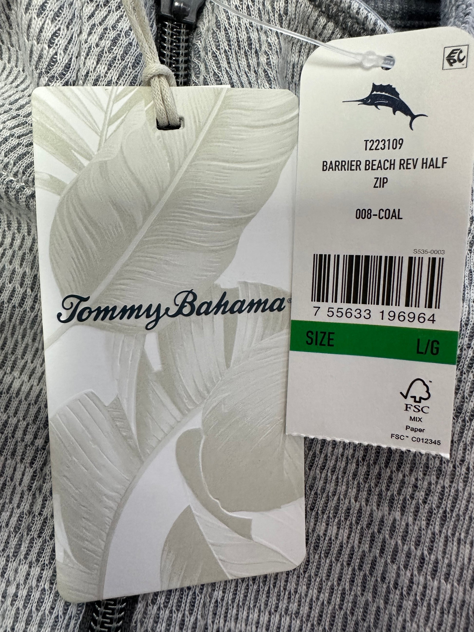 NWT - TOMMY BAHAMA gray Reversible Barrier Beach Half Zip Pullover - L