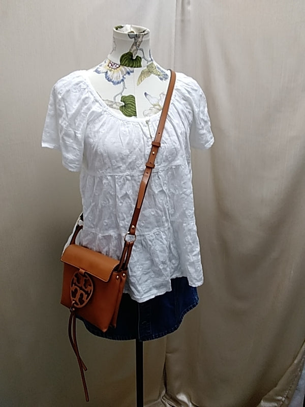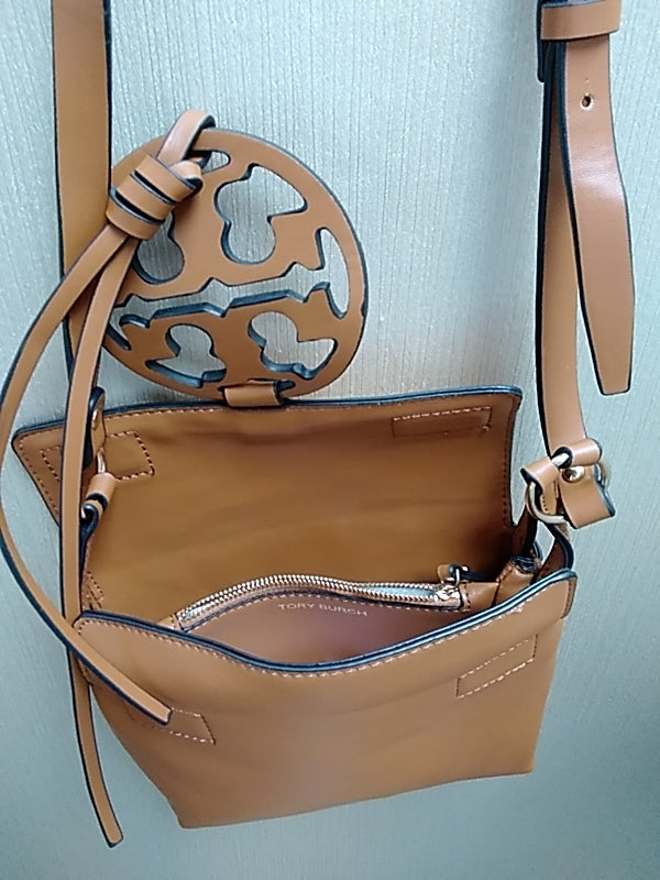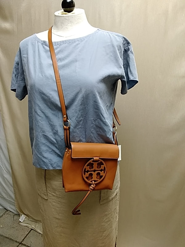 New TORY BURCH Miller Brown Crossbody Shoulder Bag Leather Camello